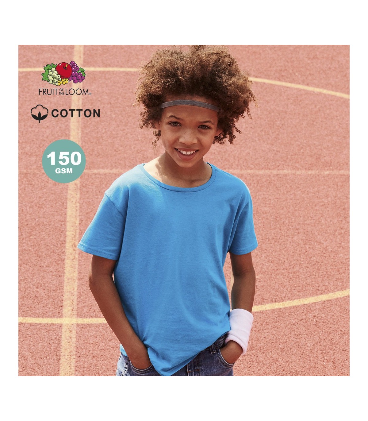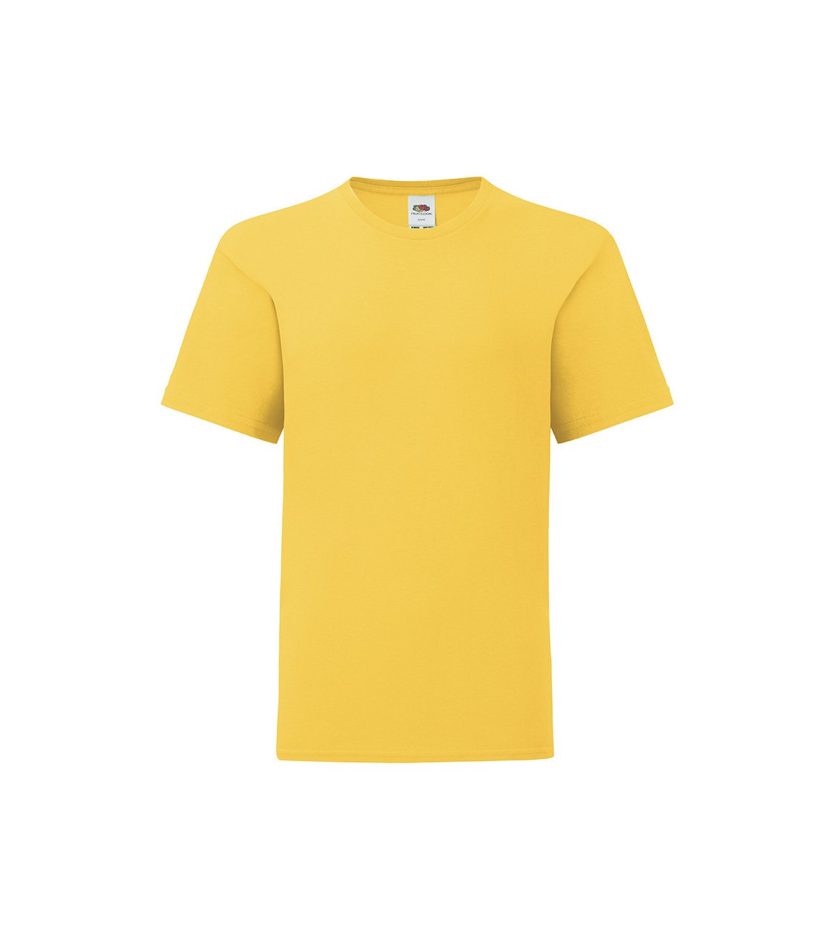 Camisetas para niño color Iconic de Fruit Of The Loom. hechas en material 100% algodón peinado Ring Spun de 150g/m2. De acabado suave y corte clásico, con cuello redondo estrecho de canalé 1x1 y tapeta a juego. Con etiquetas que puedes remover de forma fácil y disponible en diferentes colores para personalizar. Tallas 3-4, 5-6, 7-8, 9-11, 12-13, 14-15.