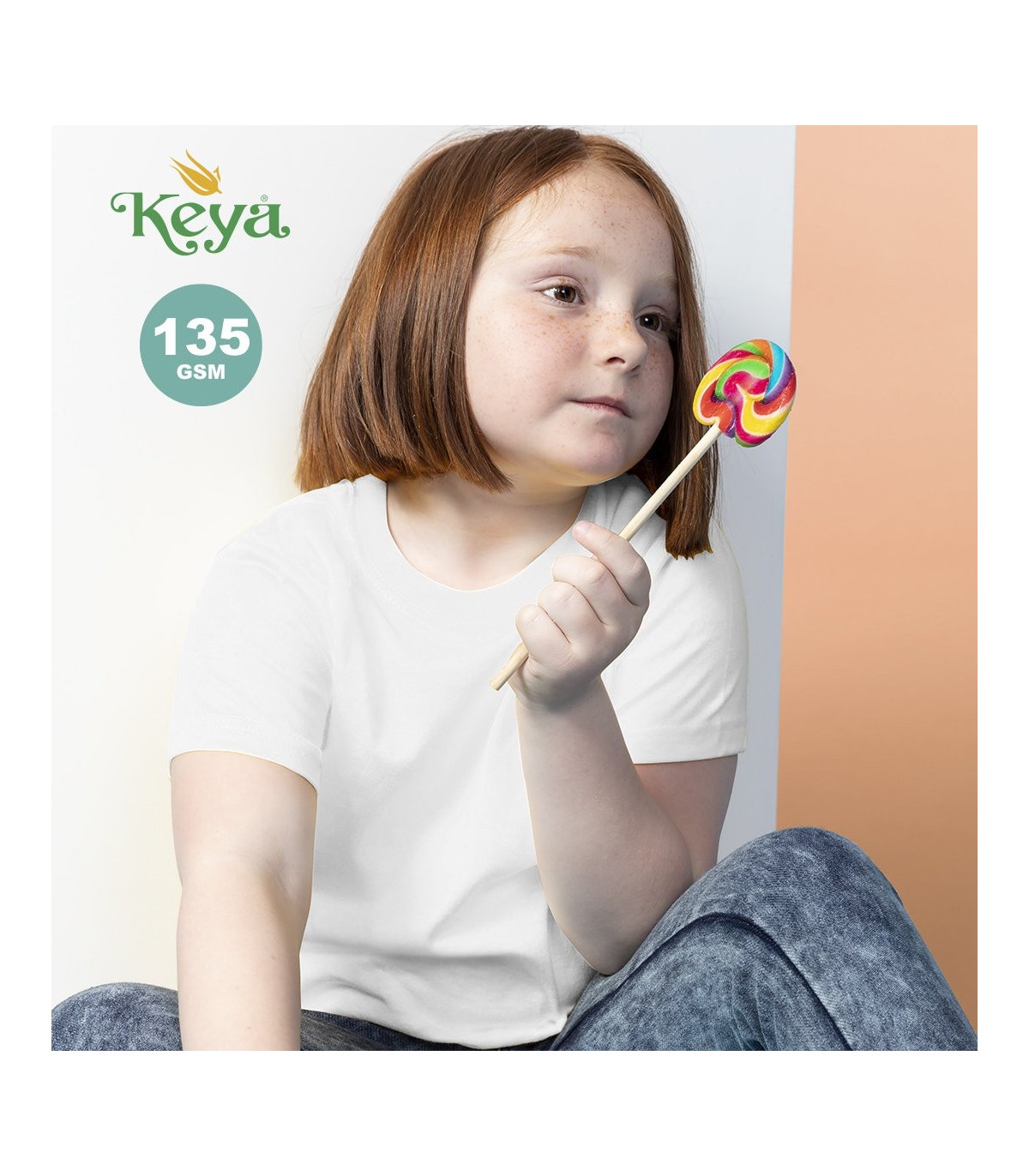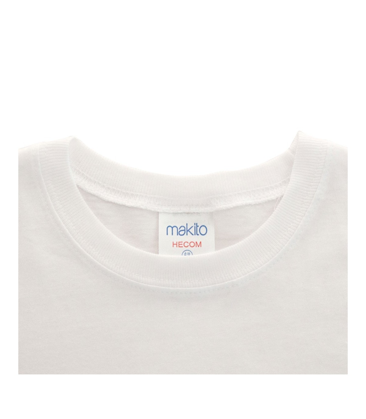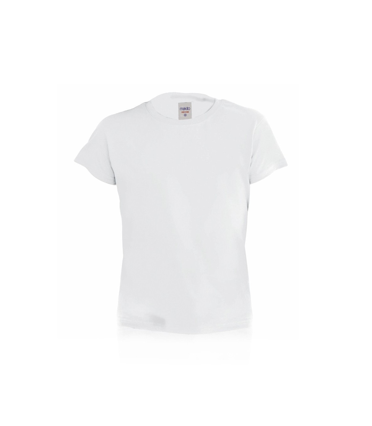 Camiseta para niño en material 100% algodón de 135g/m². Disponible en color blanco y en tallas 4-5, 6-8, 10-12.