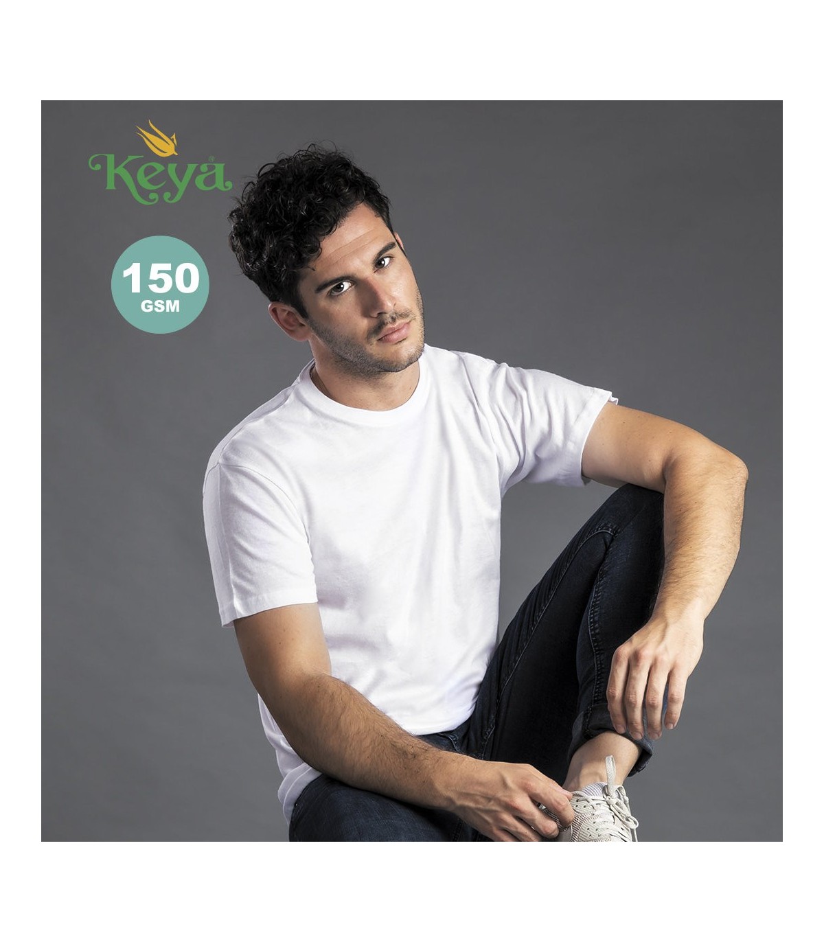 Camiseta para adulto Keya MC 150. En material 100% algodón de 150g/m². Disponible en color blanco y en tallas S, M, L, XL, XXL, 3XL.