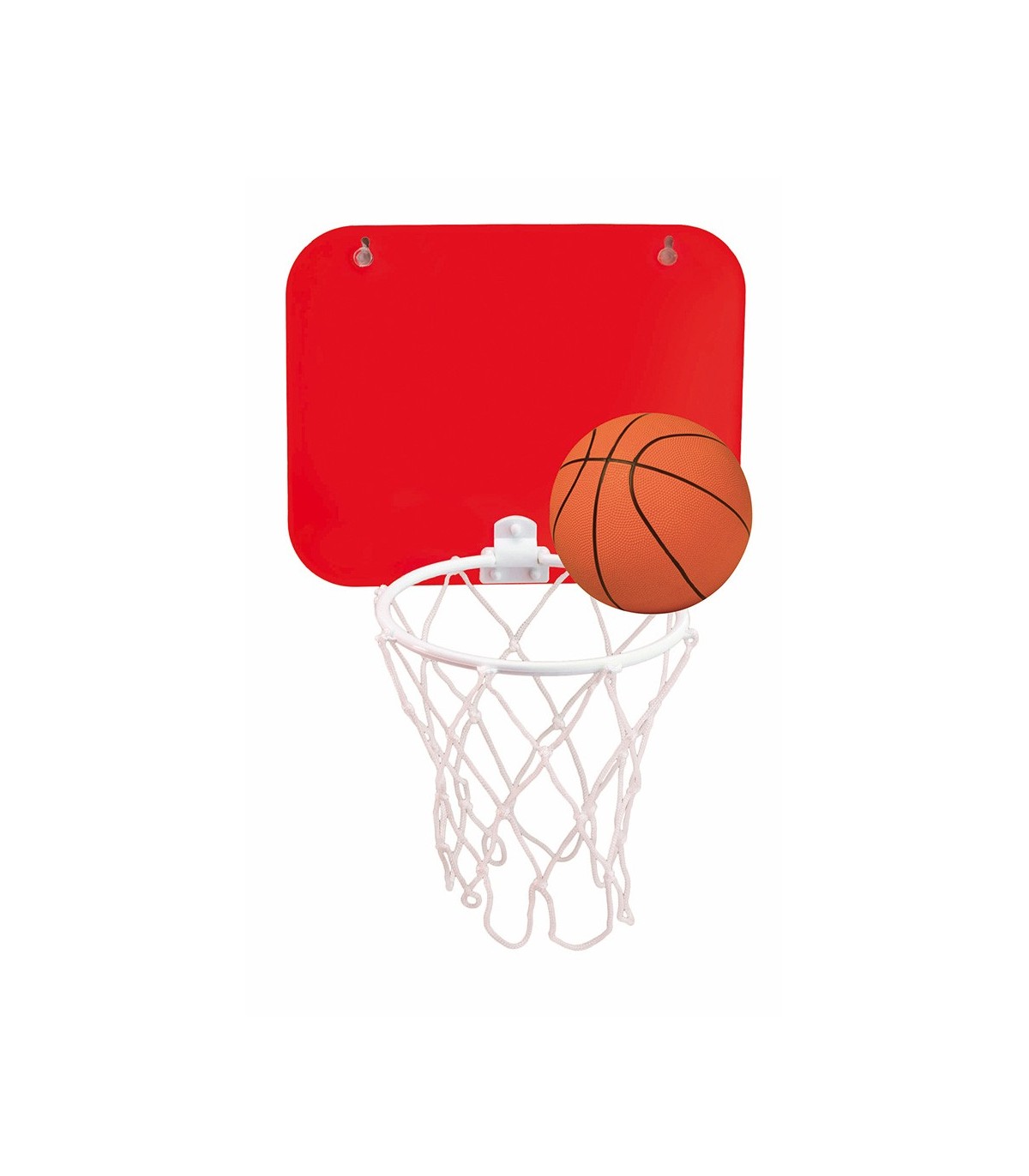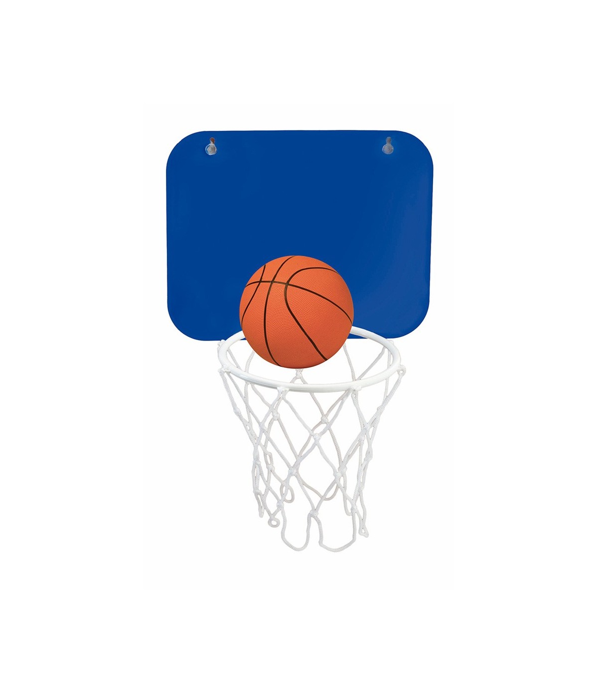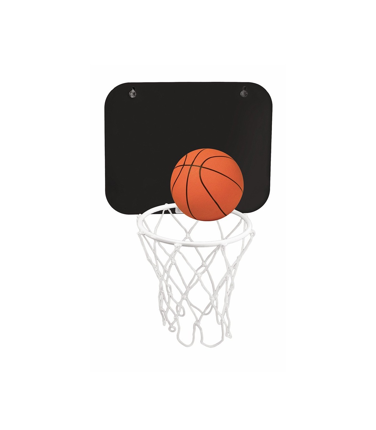Canasta en PVC con tablero fabricado en diferentes colores. Con pelota de minibasket incluida y ventosas en parte trasera para fijación.