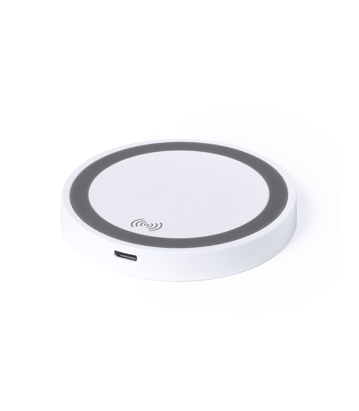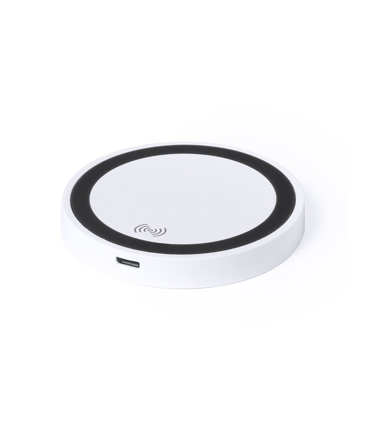Cargador inalámbrico circular de diseño bicolor. Con base antideslizante e indicador LED de estado de carga. Compatible con smartphones con tecnología de carga inalámbrica y presentado en atractiva caja de diseño.