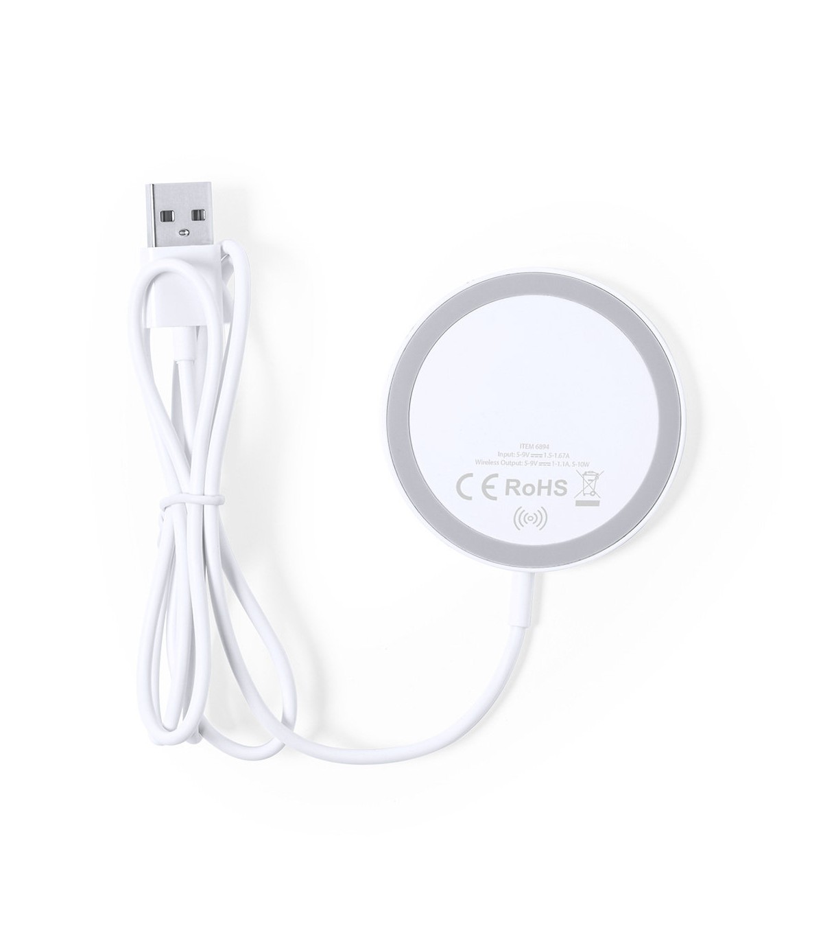 Cargadores inalámbricos magnético con carga de 15W. Cable con conexión USB de 1m. Accesorio metálico con adhesivo 3M, de fijación extra fuerte y libre de residuo al despegarlo del dispositivo, permitiendo así el uso de la función magnética del cargador en cualquier dispositivo móvil. Compatible con terminales equipados con tecnología de carga inalámbrica. Amplia superficie de marcaje y presentado en atractiva caja de diseño. Disponible manual de instrucciones en español e inglés.