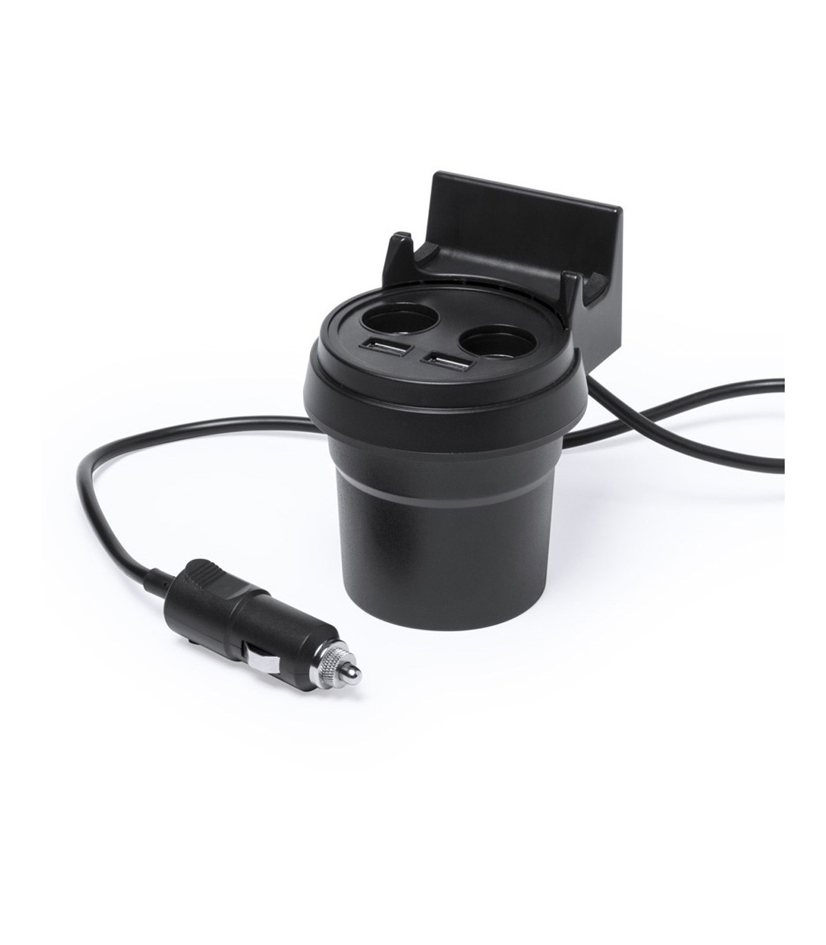 Cargador de móviles para el coche con soporte y cable, con dos salidas USB personalizados como articulo promocionales para regalos de empresa en eventos o ferias.