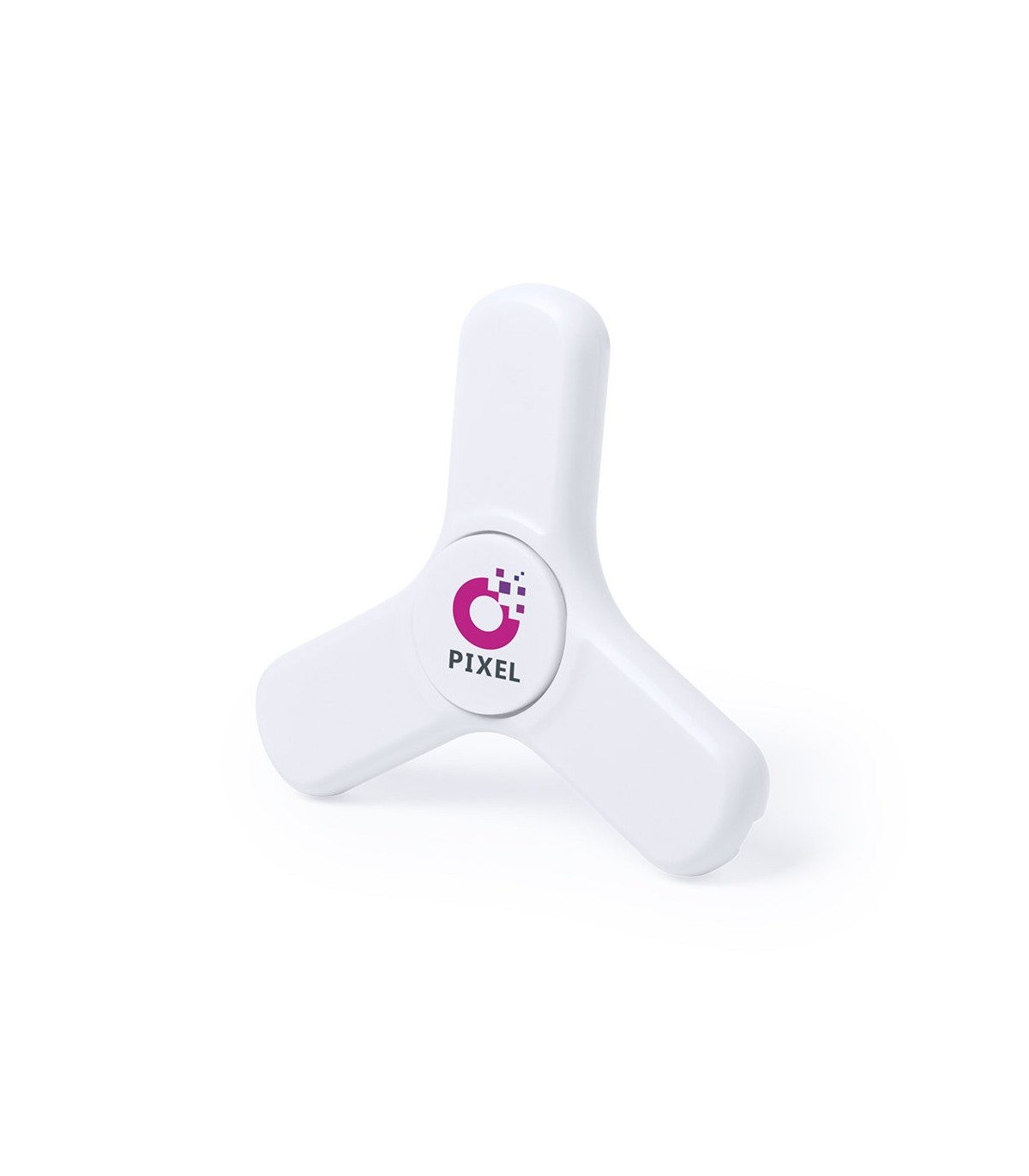Original cargador spinner antiestrés con acabado en color blanco. Conexiones retráctiles micro USB, USB y Tipo C. Con pastilla central especialmente diseñada para marcaje en tampografía.