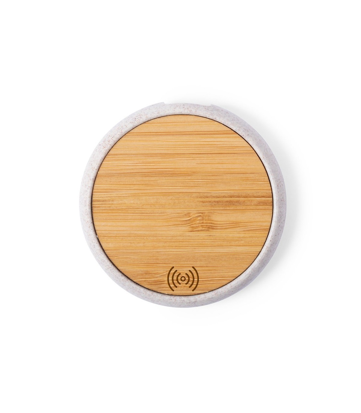 Cargador inalámbrico de diseño circular con superficie de carga en bambú y carcasa en caña de trigo, para así fomentar la utilización de materias primas naturales y reducir las emisiones contaminantes. Indicador led, con cable de carga micro USB incluido y compatible con dispositivos equipados con tecnología de carga inalámbrica. Protección de seguridad para evitar sobrecalentamiento, sobrecarga y cortocircuito. Presentado en atractiva caja de diseño nature.