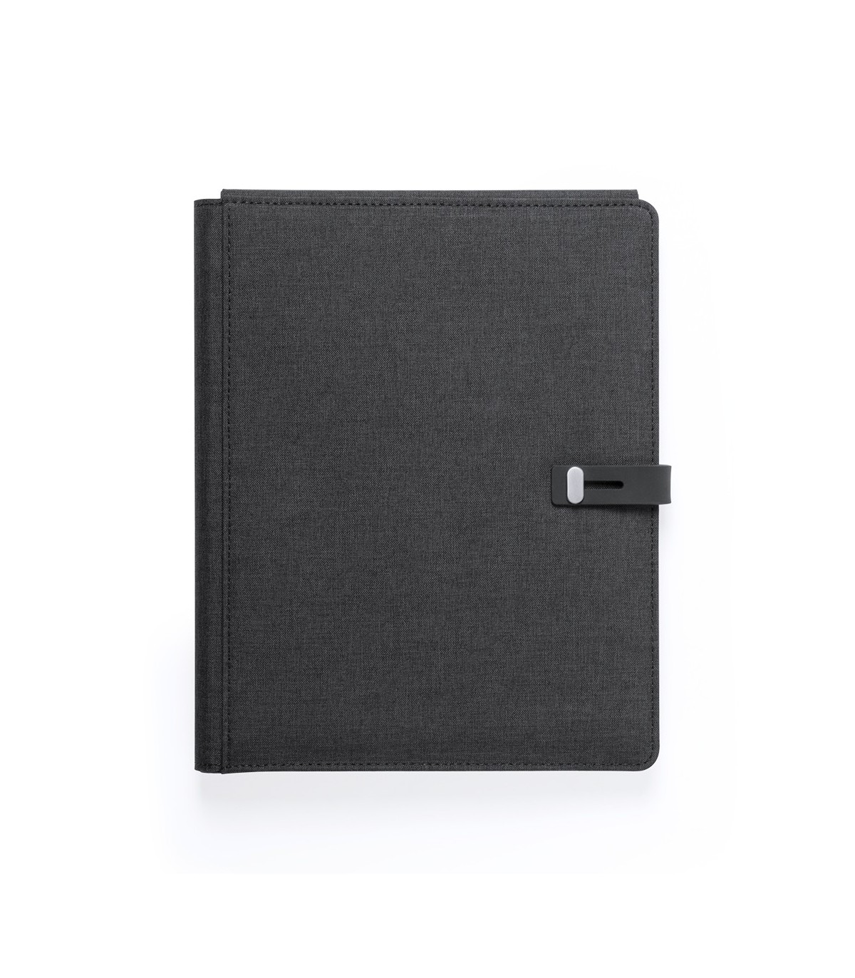 Carpeta power bank de gran capacidad de carga -5.000 mAh- integrada.varios compartimientos con funda de pantalla táctil para smartphones y LED indicadores de estado de carga. Incluye un bloc de notas de 65 hojas.