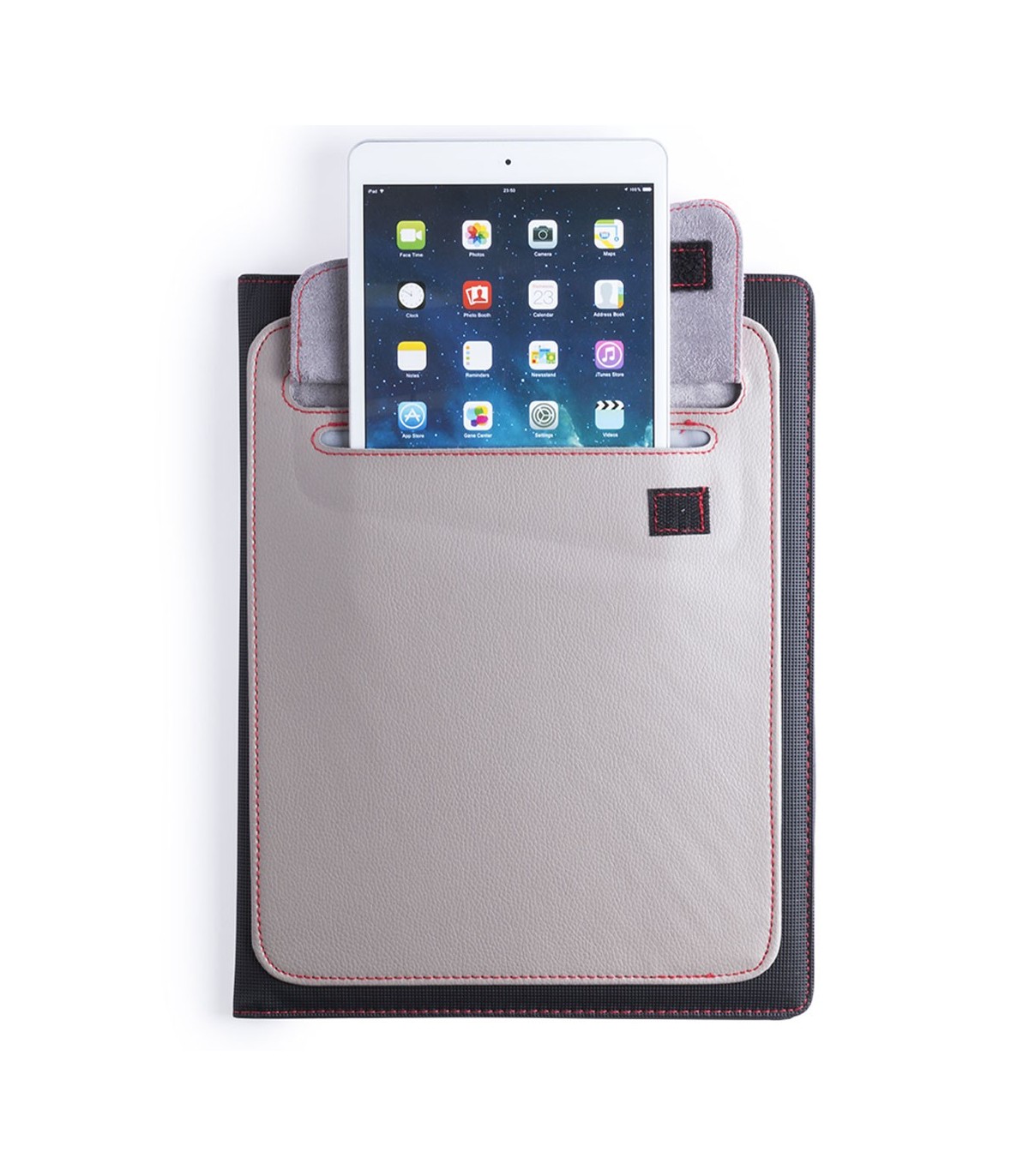 Carpetas originales para regalos de empresa fabricadas en polipiel y poliéster con bloc de notas y bolsillo exterior para guardar la tablet.