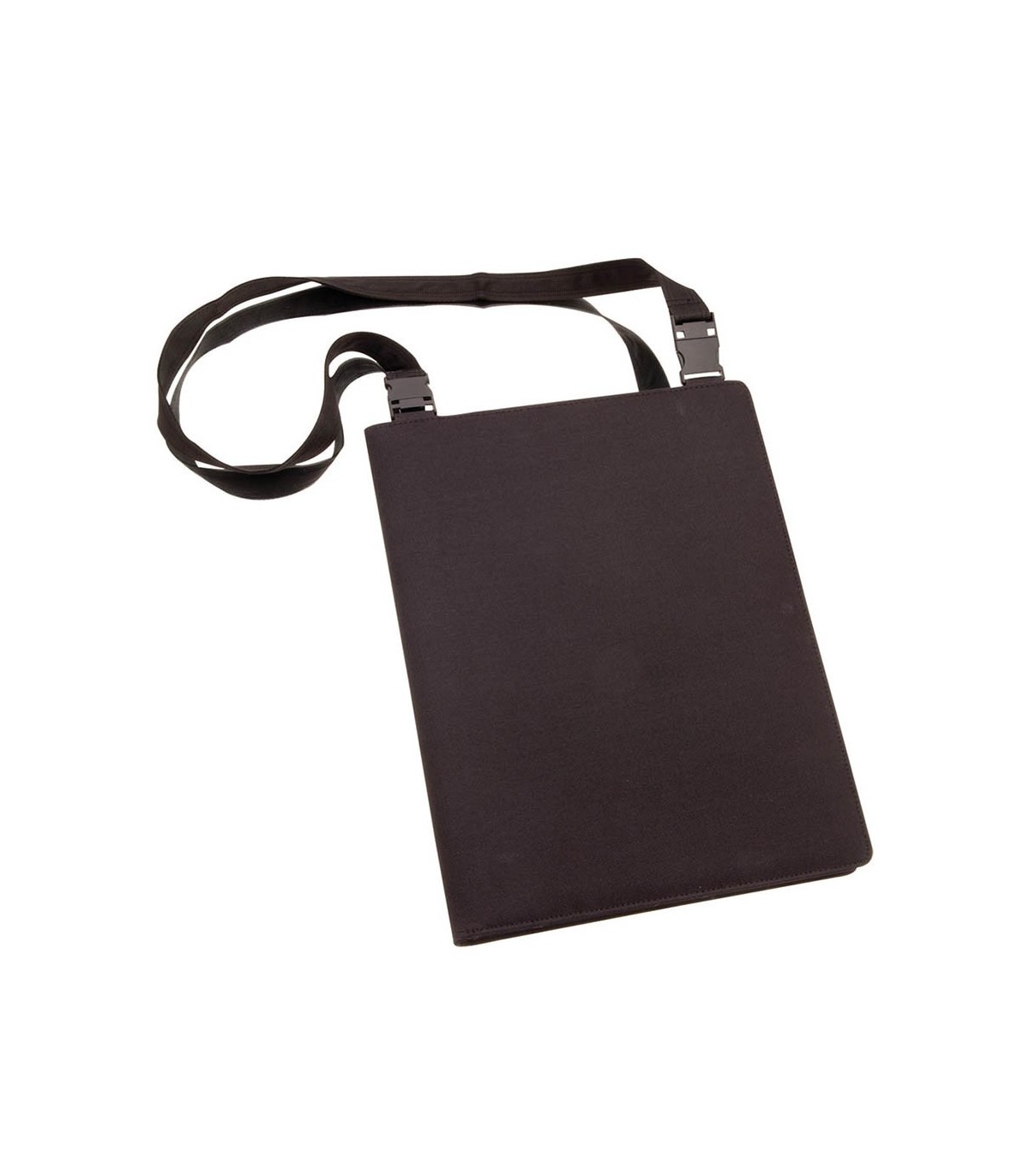 Original carpeta de poliéster 600D con cinta bandolera desmontable. Interior con bloc extraíble de 20 hojas lisas, bolsillo de solapa, tarjeteros y soporte para bolígrafo.