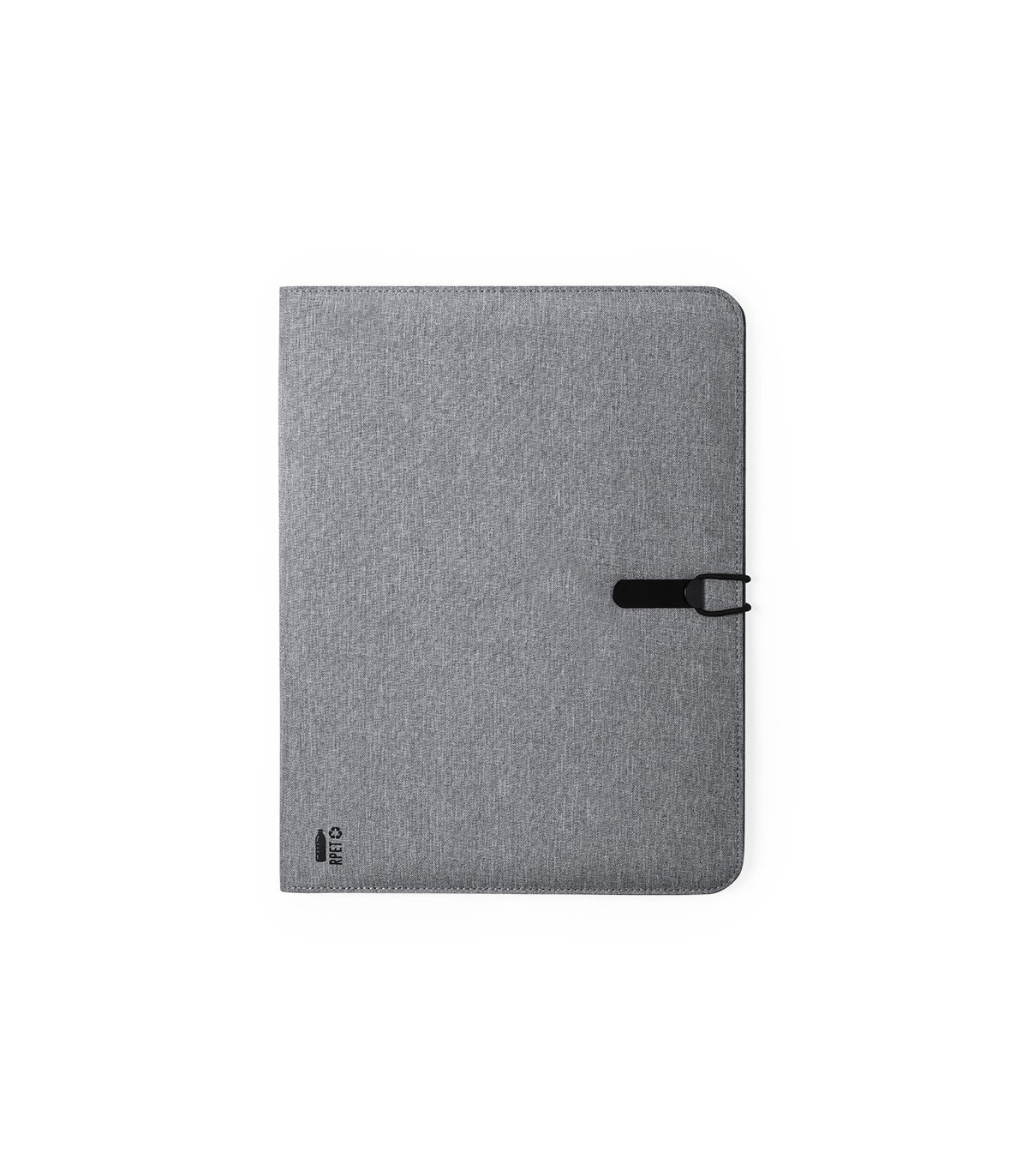 Carpeta A4 de resistente 600D RPET efecto melange, Interior con bloc extraíble de 20 hojas con disposición a una raya, 3 bolsillos de solapa, tarjeteros y soporte para bolígrafo.