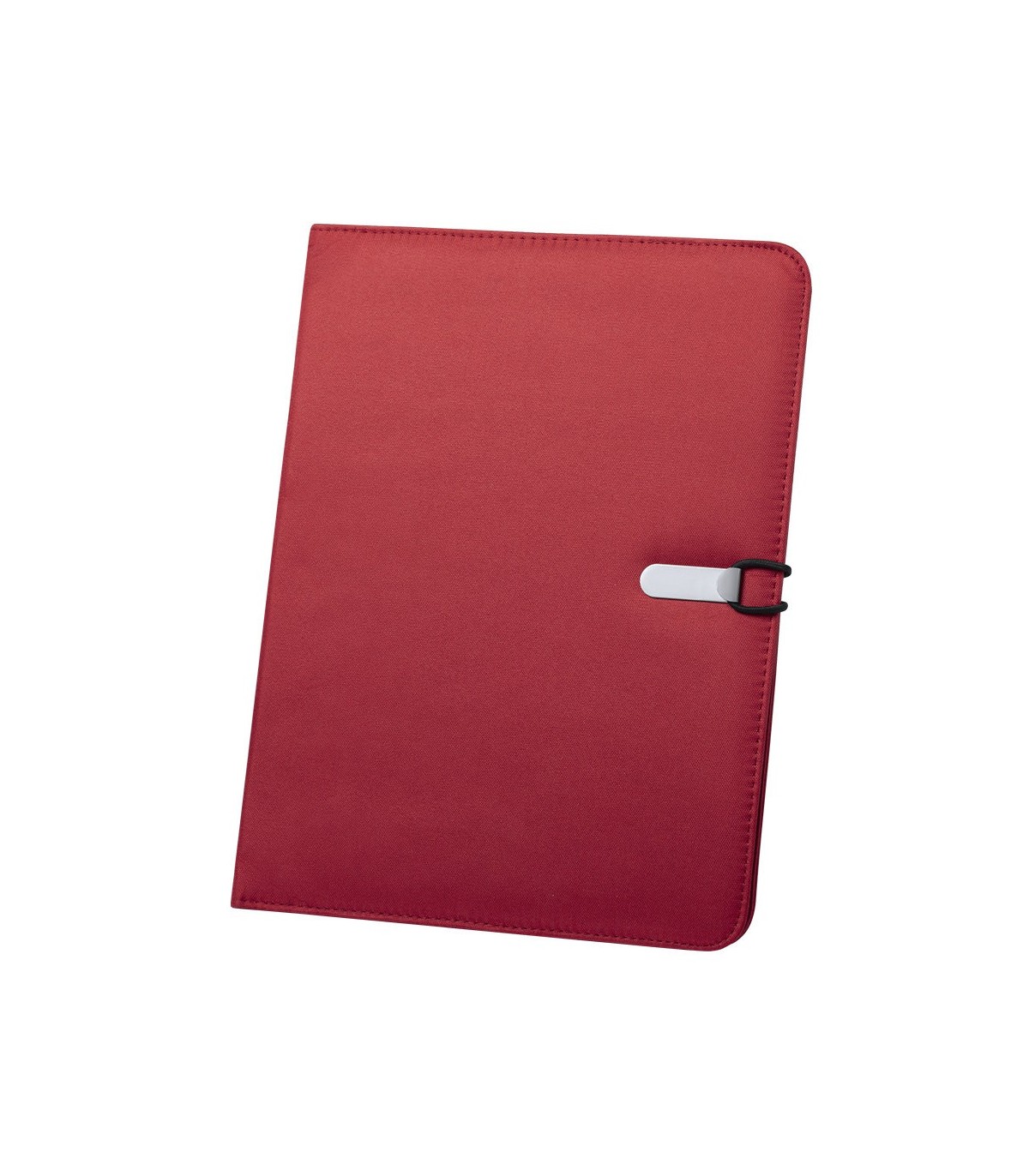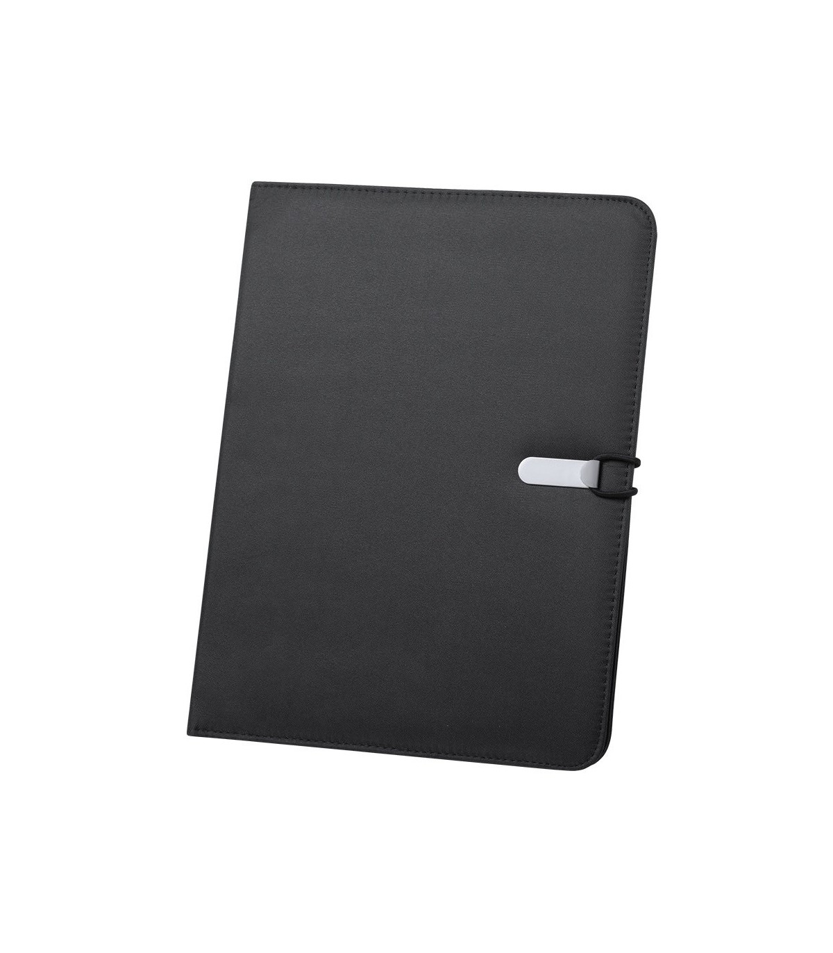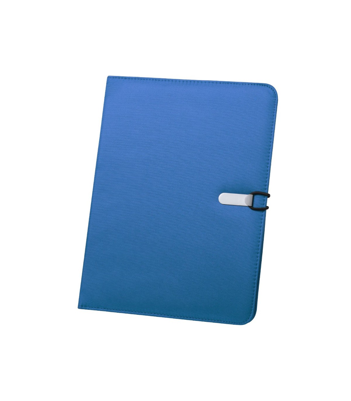 Elegante carpeta en vivos colores acabada en suave microfibra, con cierre metálico de elástico especialmente diseñado para marcaje en láser. Interior con bloc extraíble de 20 hojas lisas, 3 bolsillos de solapa, tarjeteros y soporte para bolígrafo.