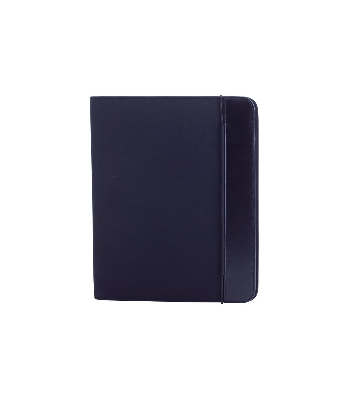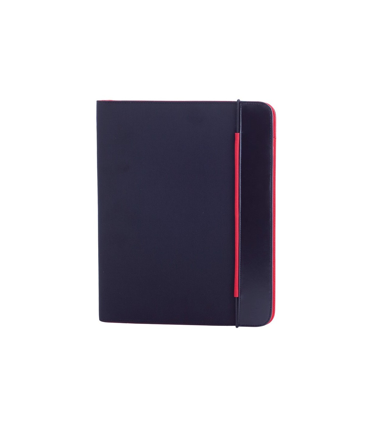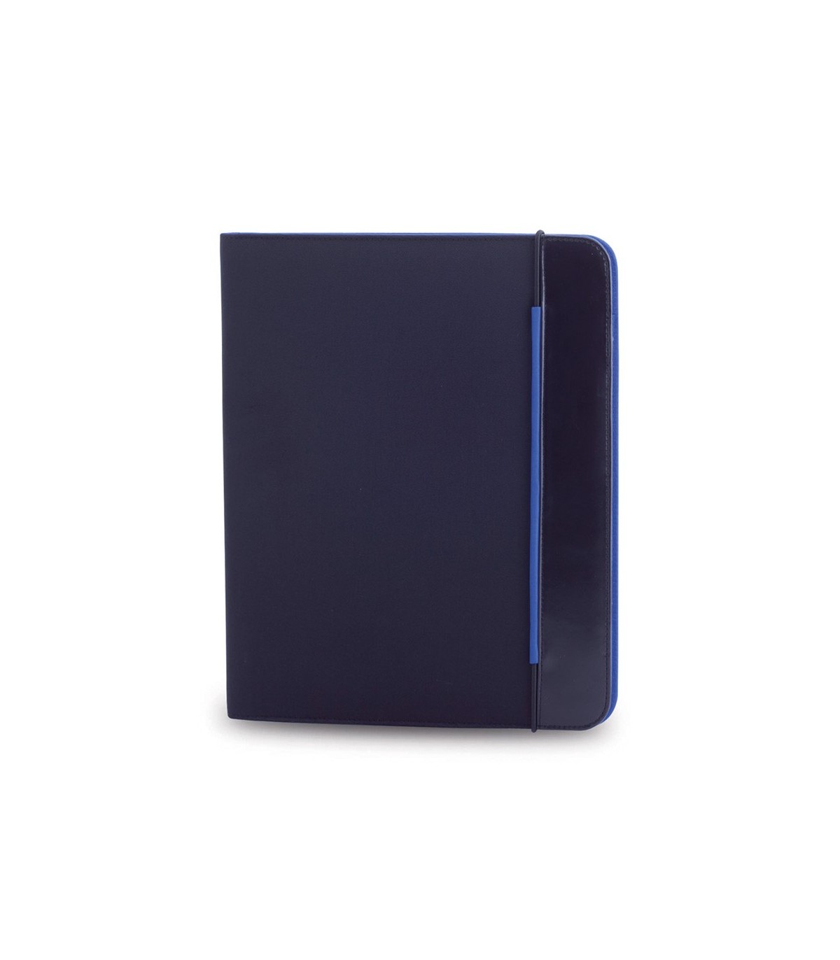 Carpeta de diseño bicolor en vivos colores acabada en suave microfibra y con cierre elástico. Interior a juego con bloc extraíble de 20 hojas lisas, bolsillo de solapa, tarjeteros y soporte para bolígrafo.