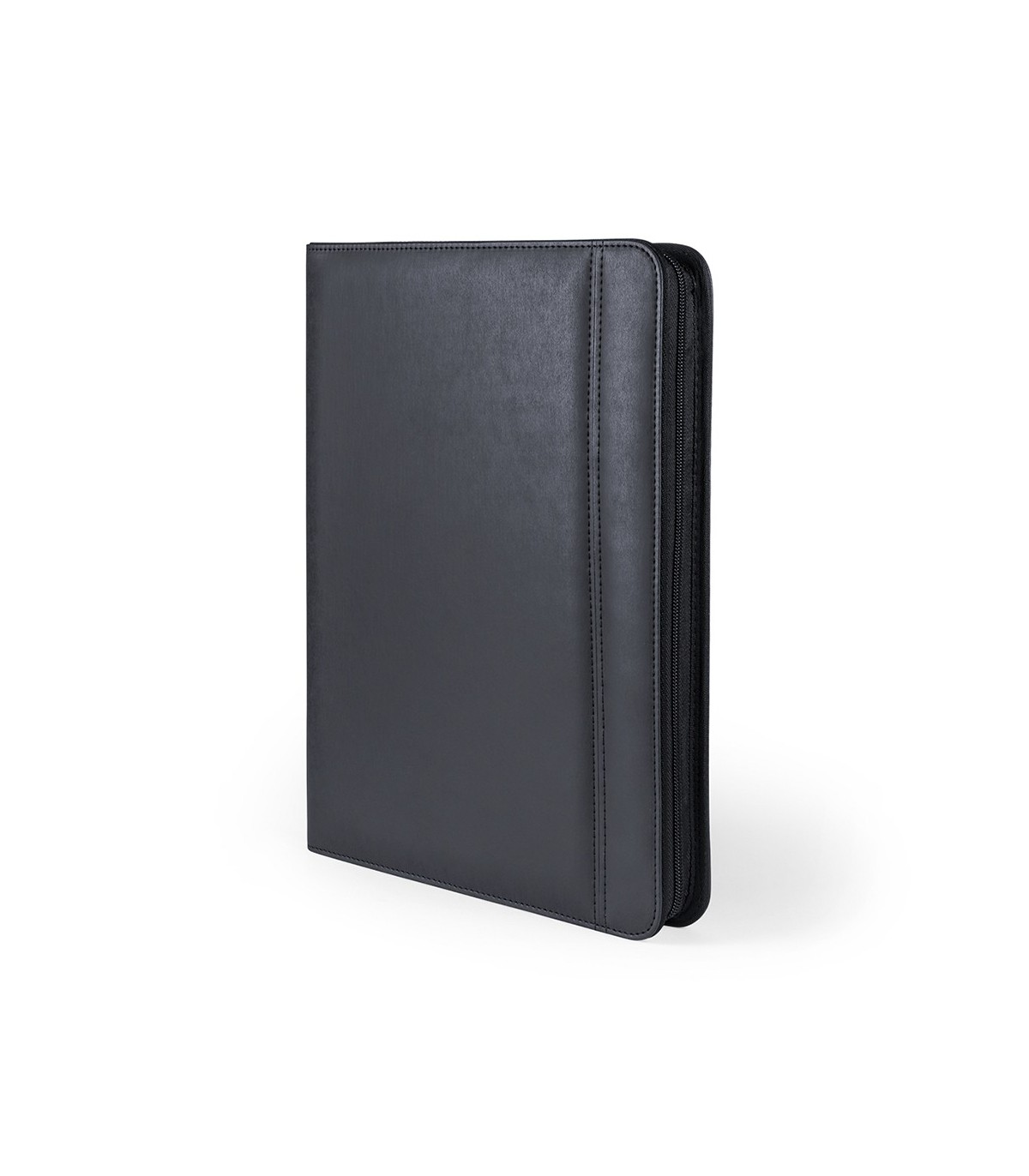 Carpeta de elegante y suave polipiel negra con batería auxiliar externa de gran capacidad de carga -5.000 mAh- integrada. De sobrio diseño y apertura de cremallera, con multitud de compartimentos para almacenar tarjetas de visita, memorias USB, además de una funda con pantalla táctil para smartphones y LED indicadores de estado de carga en la parte trasera de la carpeta. Incluye un bloc de notas de 20 páginas tamaño A4 y un soporte para tablets de hasta 9,7 pulgadas. El fácil acceso a la estación de carga mediante cable micro USB -incluido- hacen de esta carpeta el gadget perfecto para el mundo de los negocios y los estudios. Las capacidades mostradas en todas nuestras baterías auxiliares externas son reales, incorporando todas ellas baterías de grado A y no recicladas, con una vida útil de al menos 500 ciclos de carga y según normativa CE. Además, están fabricadas conforme a los estándares RoHS y en cumplimiento con los siguientes requisitos de seguridad: Sistema de protección contra sobrecarga del power bank. Sistema de protección contra descarga completa que proporciona una mayor durabilidad del power bank. Sistema de bloqueo para evitar cortocircuitos. Sistema de transferencia de carga constante, acorde con la capacidad del dispositivo de destino.