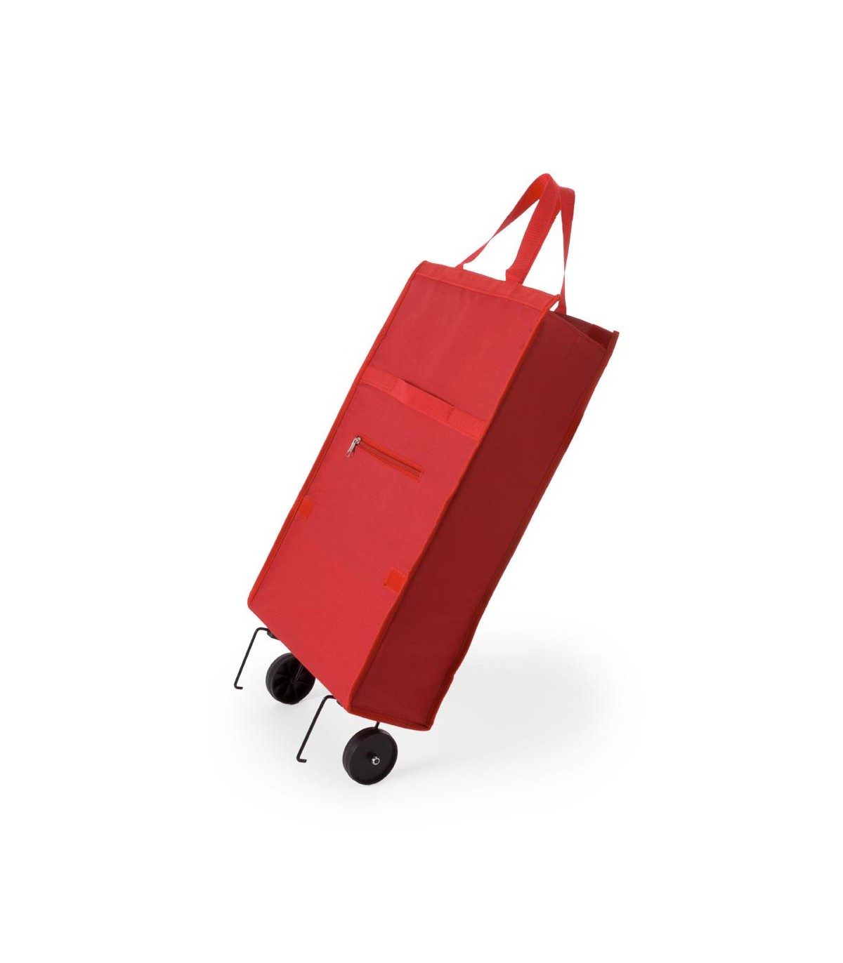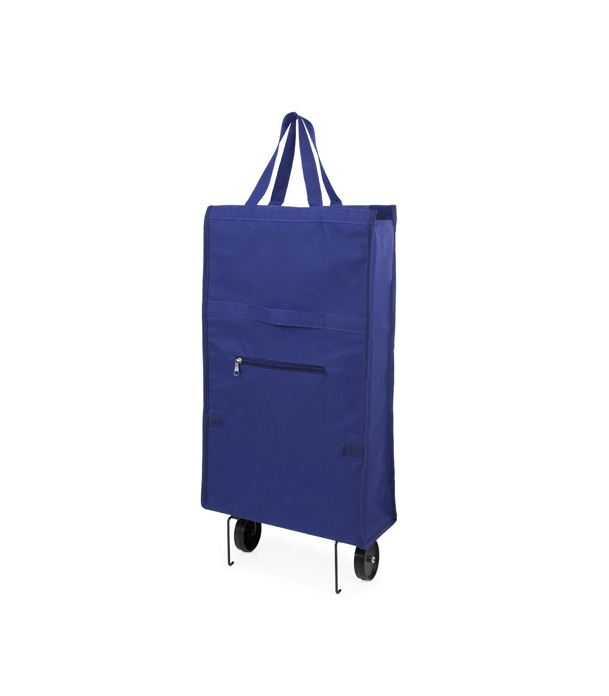 Carro de compra plegable en resistente poliéster 600D de variada gama en vivos colores. Con asas de nylon reforzadas a juego, bolsillo de cremallera frontal a juego y soportes metálicos. Plegado de pequeño tamaño.