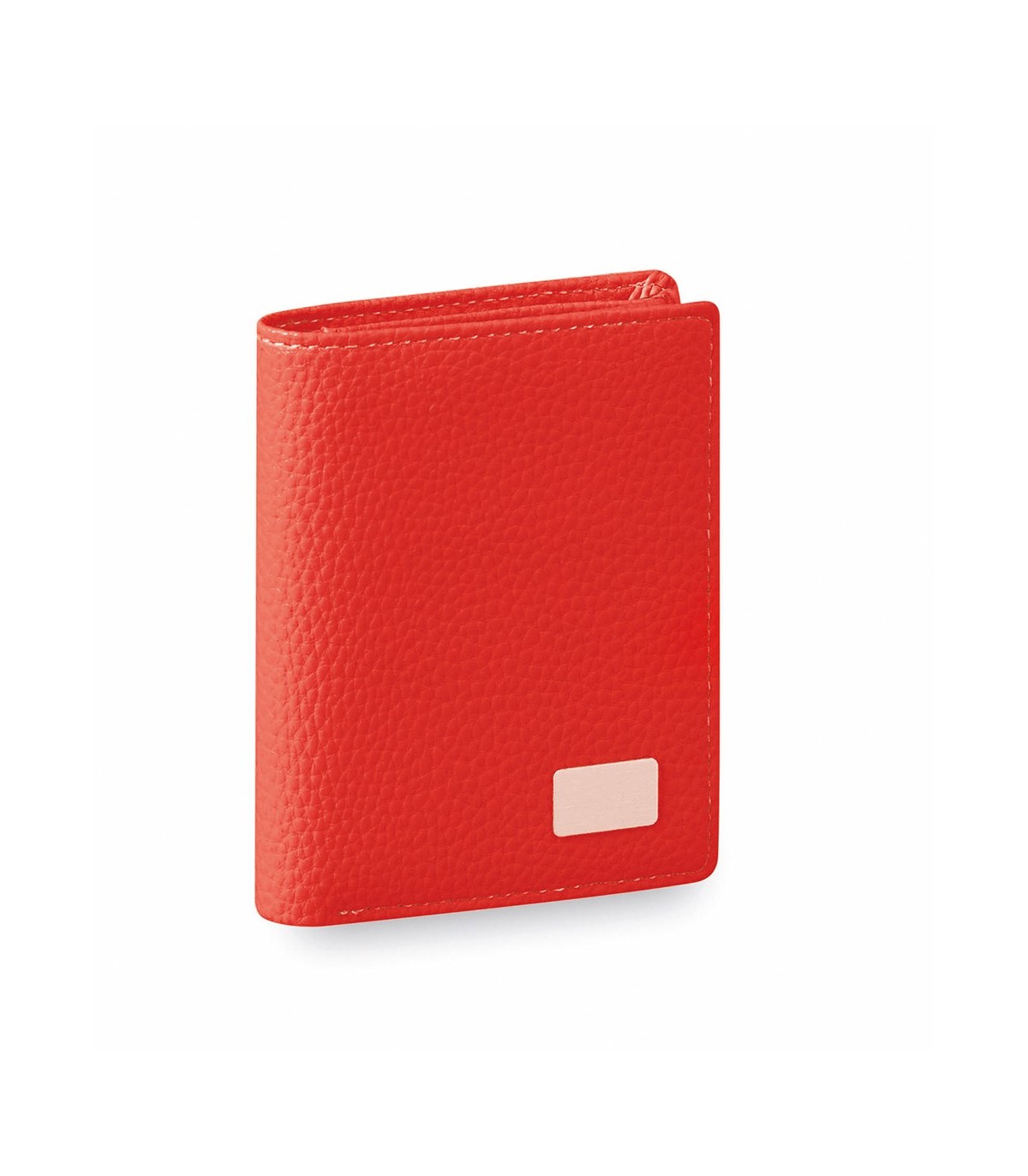 Cartera elegante polipiel brillante varios colores. Interior con billetero, compartimento transparente para documentación. Con chapa metálica exterior para marcaje.