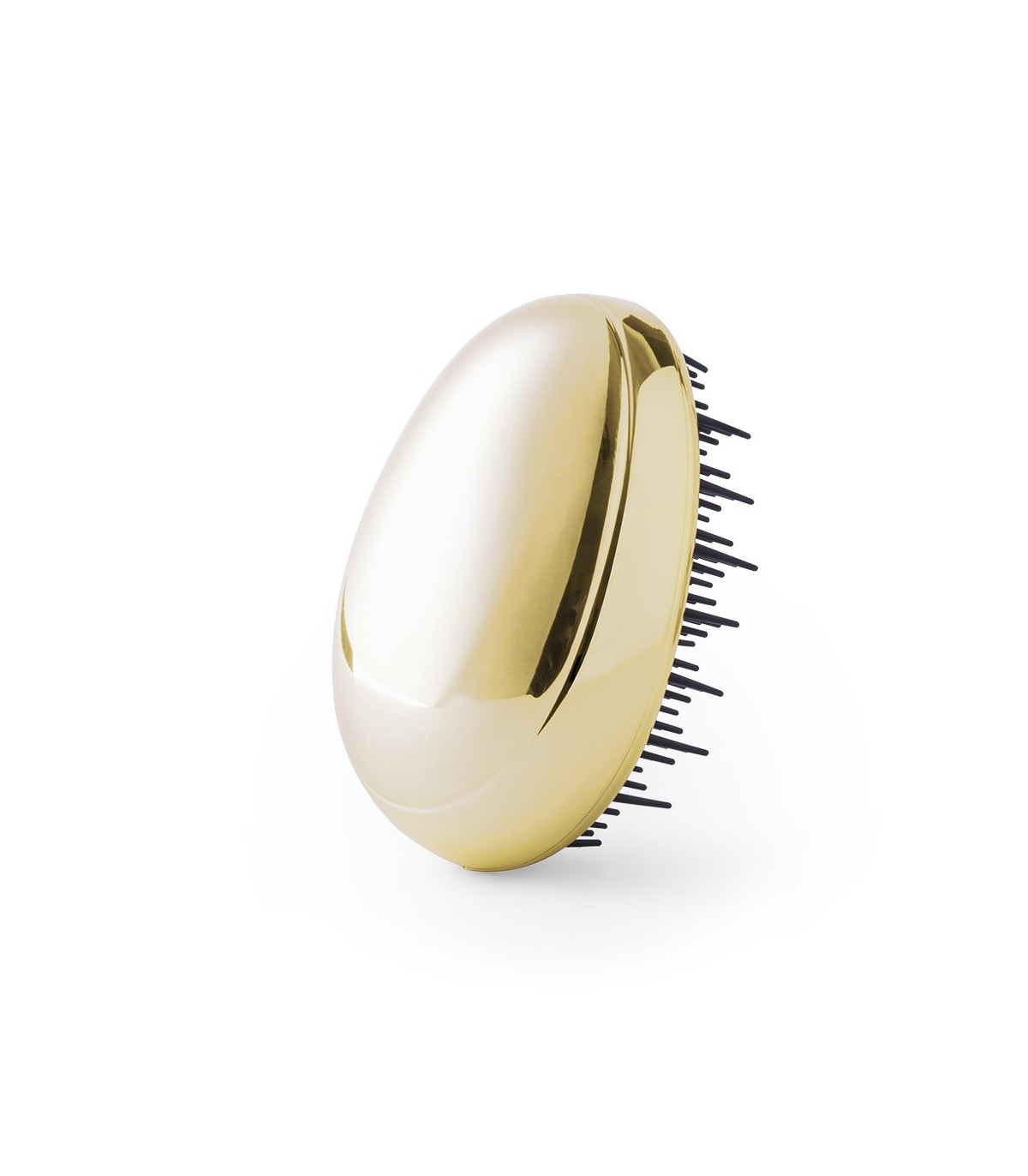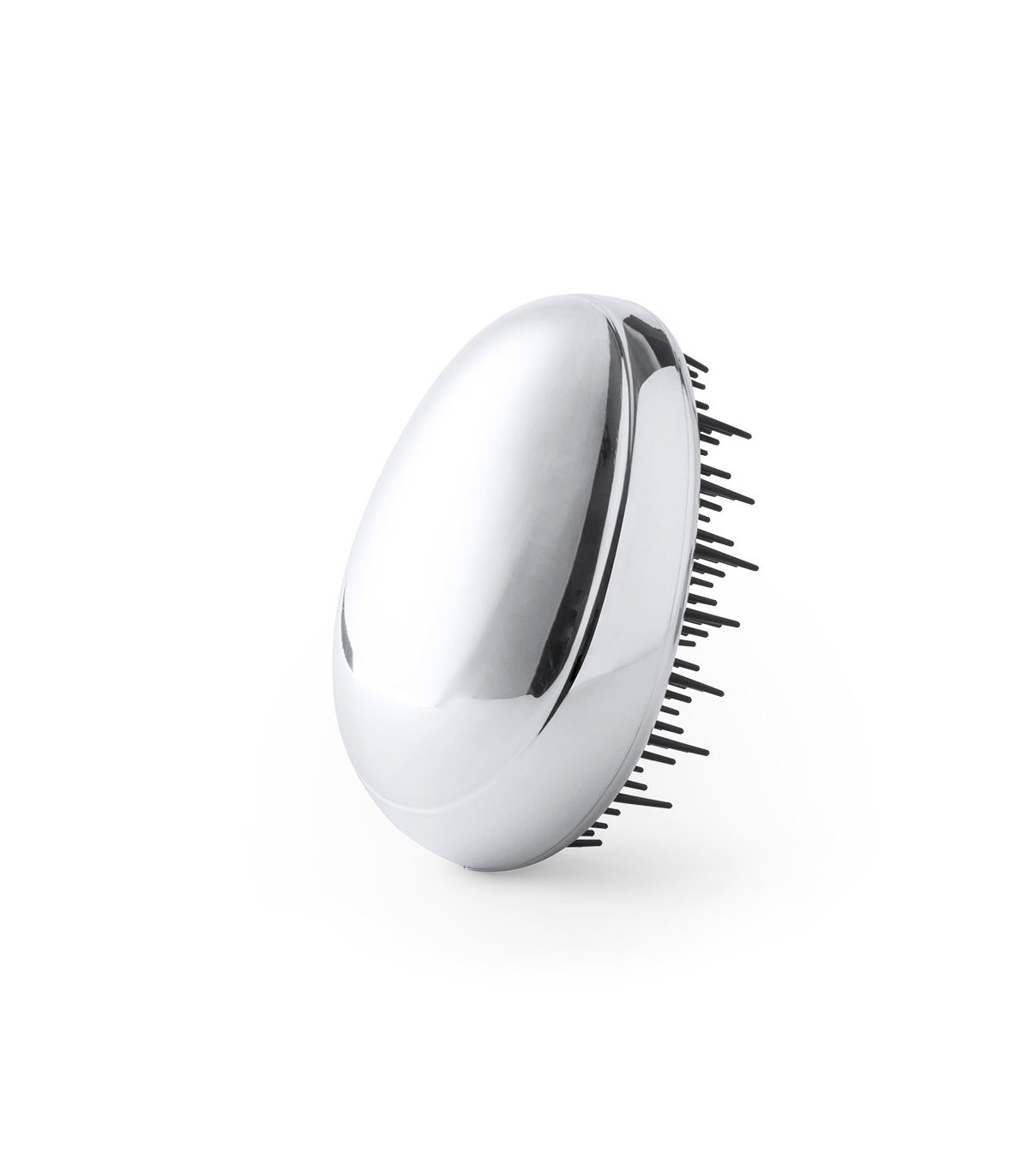 Delicados cepillos de peinar antienredo en colores metalizados, ideales para personalizar con tu logo de empresa y regalar a tus clientes en eventos.