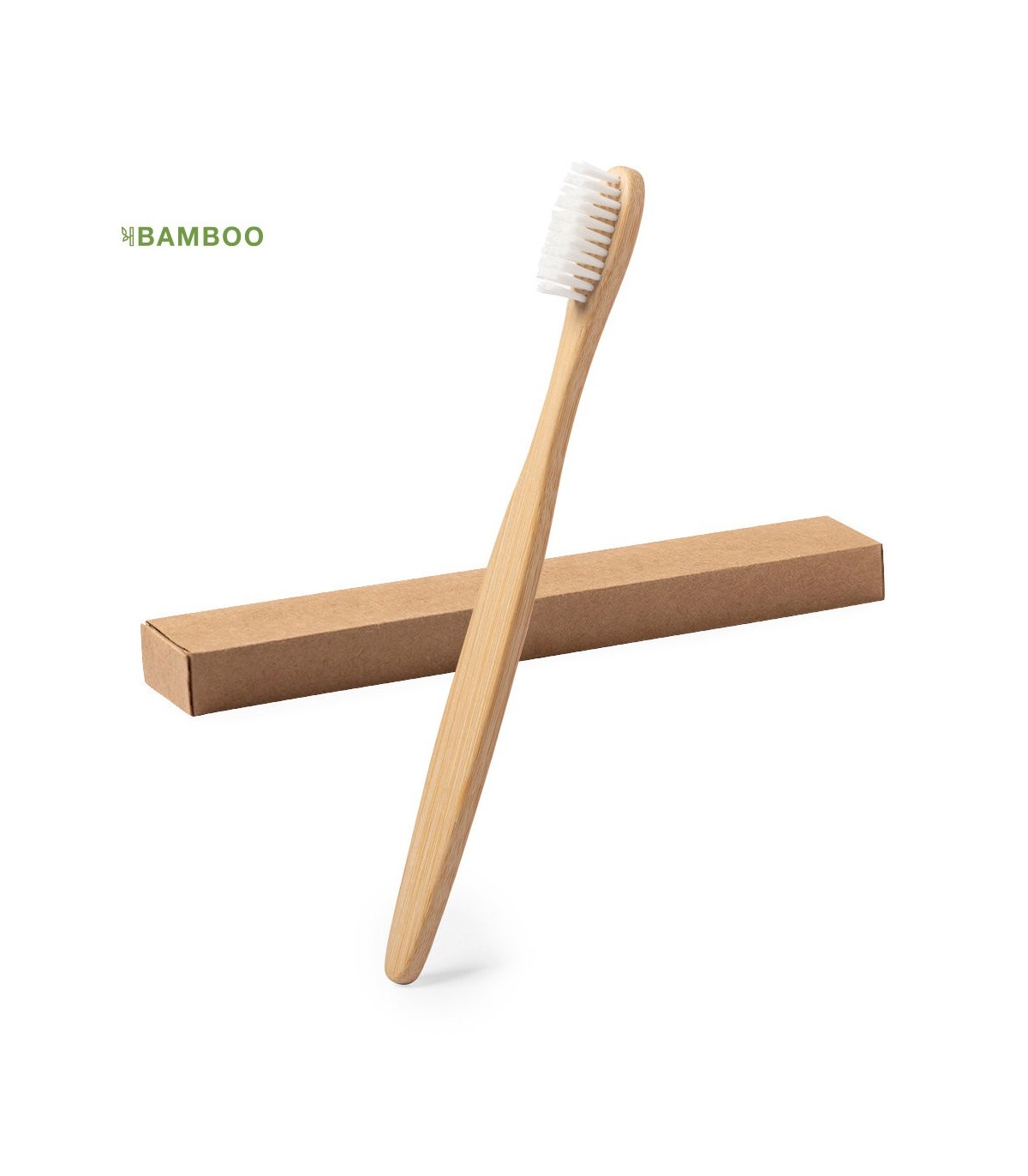 Cepillo de dientes de línea ecológica. Fabricado en bambú y presentado en caja individual de diseño eco.