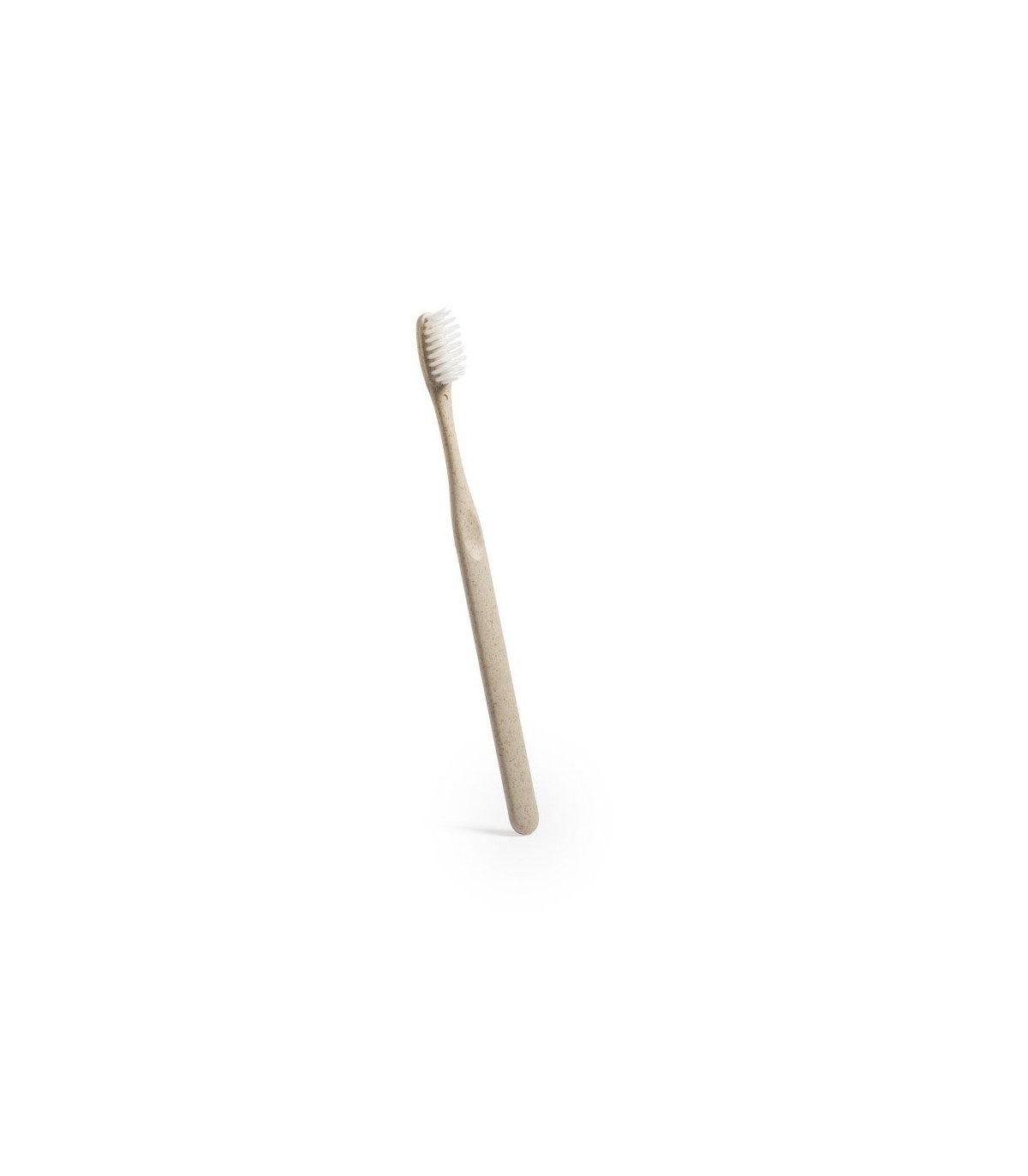 Cepillo de dientes de línea nature. Fabricado en caña de trigo, para así fomentar la utilización de materias primas naturales y reducir las emisiones contaminantes. Con capucha de protección.
