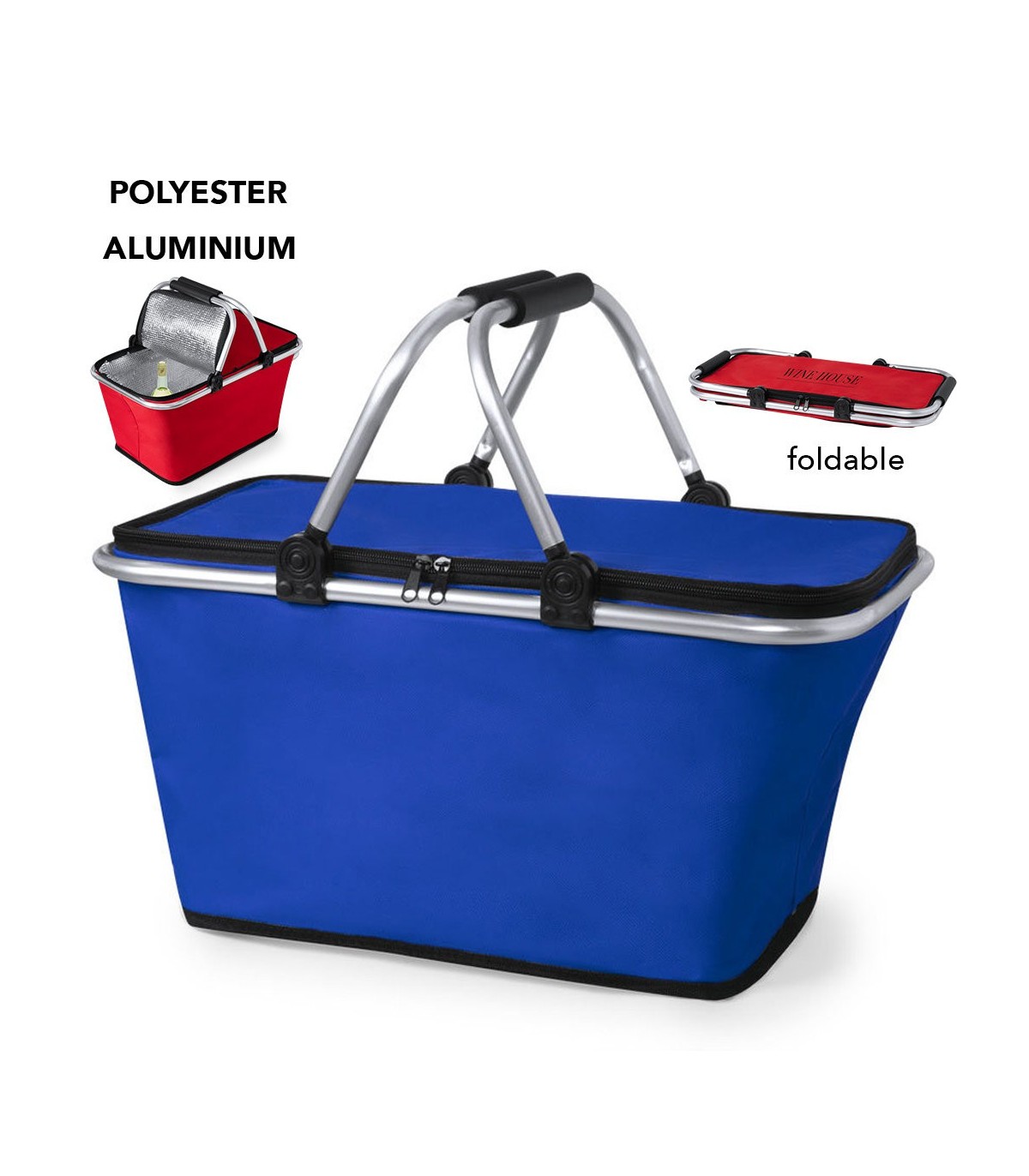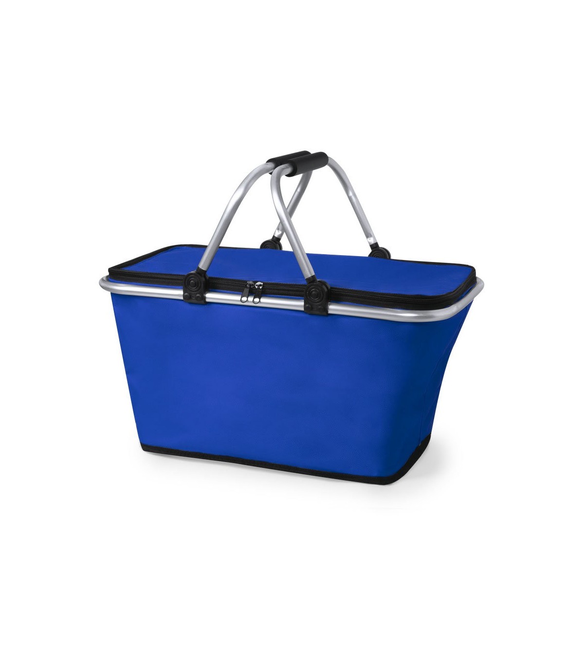 Cesta térmica en resistente poliéster 600D con interior de aluminio libre de BPA. Cierre de cremallera, con estructura de aluminio plegable y asas con EVA para mayor comodidad en el transporte. Resistencia de hasta 15 kg de peso y disponible en vivos colores.