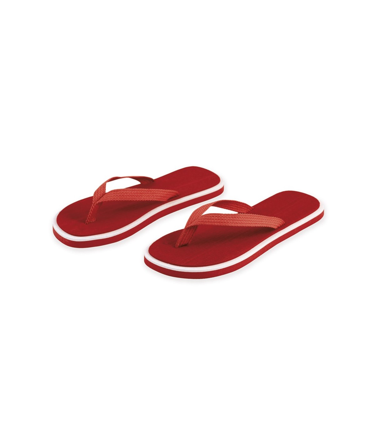Chanclas promocionales con gruesa suela en resistente EVA de acabado bicolor y tira de nylon a juego en variada gama de vivos colores. Disponibles en tallas 36-38, 42-44.