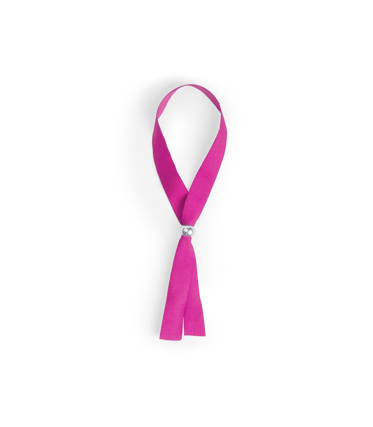 Pulsera ajustable en suave poliéster y amplia gama de colores. Con accesorio de ajuste en color plateado brillante.