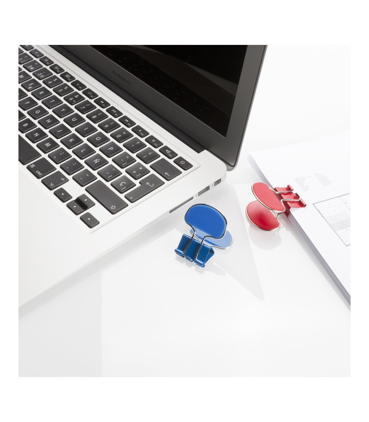 Clip de original diseño, con cuerpo metálico de acabado brillante en vivos colores y pulsadores con suave acabado a juego.