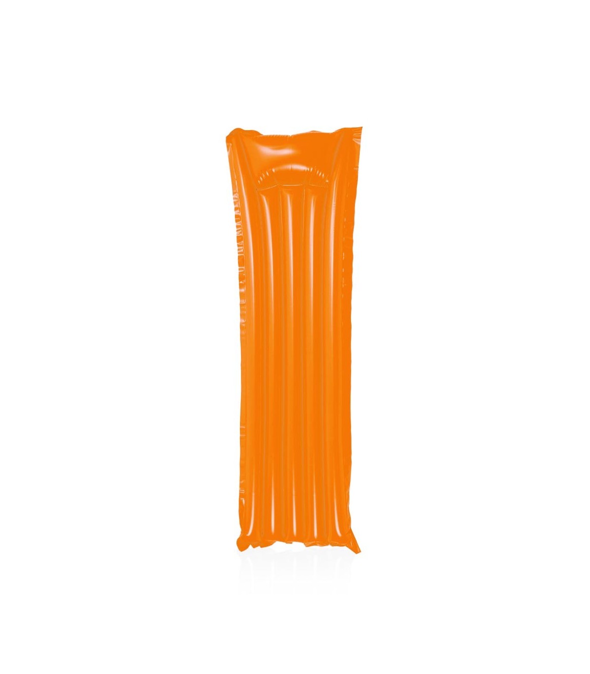 Colchoneta inflable de 180cm en resistente PVC de vivos colores. Presentada con plegado especial para fácil impresión.