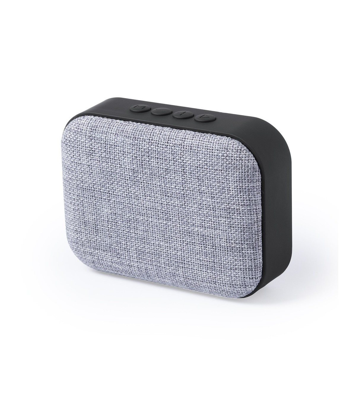 Altavoz de conexión bluetooth. En tejido de poliéster de acabado bicolor y con cuerpo en suave acabado goma. Ofrece 3W de potencia, tiene función de manos libres, una ranura para tarjetas micro SD de hasta 32 GB de capacidad. Compatible con iOS y Android, incluye cable de carga micro USB y viene presentado en una caja individual de diseño. Con soportes de goma antideslizantes en la base.