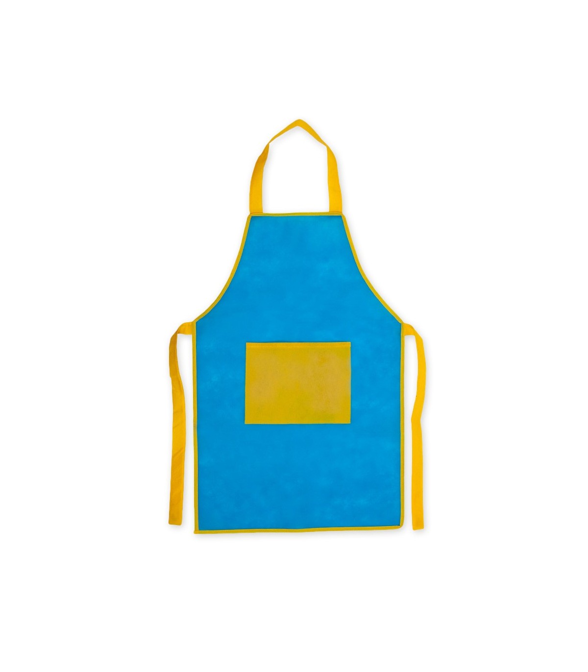 Delantal infantil en non-woven en alegre combinación bicolor. Con cintas de ajuste en cuello y espalda.