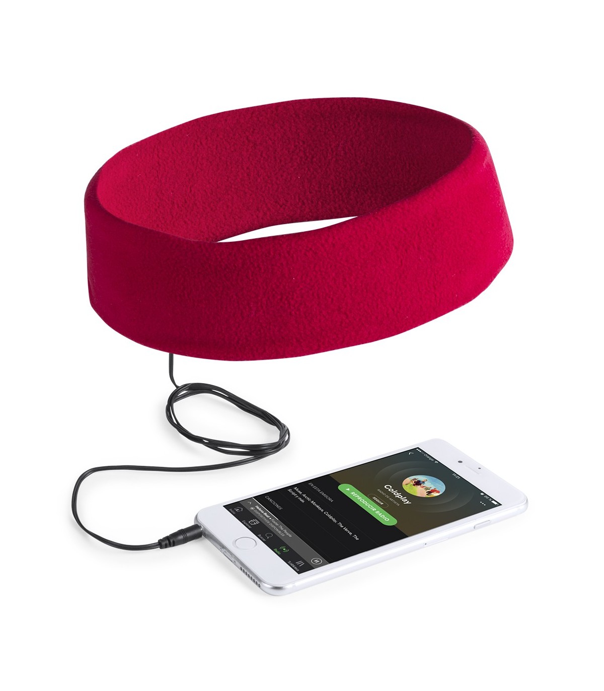 Confortable cinta de forro polar con auriculares integrados. El cálido tacto del forro polar y el cable de conexión jack de 3,5mm hacen de esta cinta el gadget idóneo para disfrutar de los contenidos multimedia de la manera más cómoda. Presentados en atractiva caja de diseño.