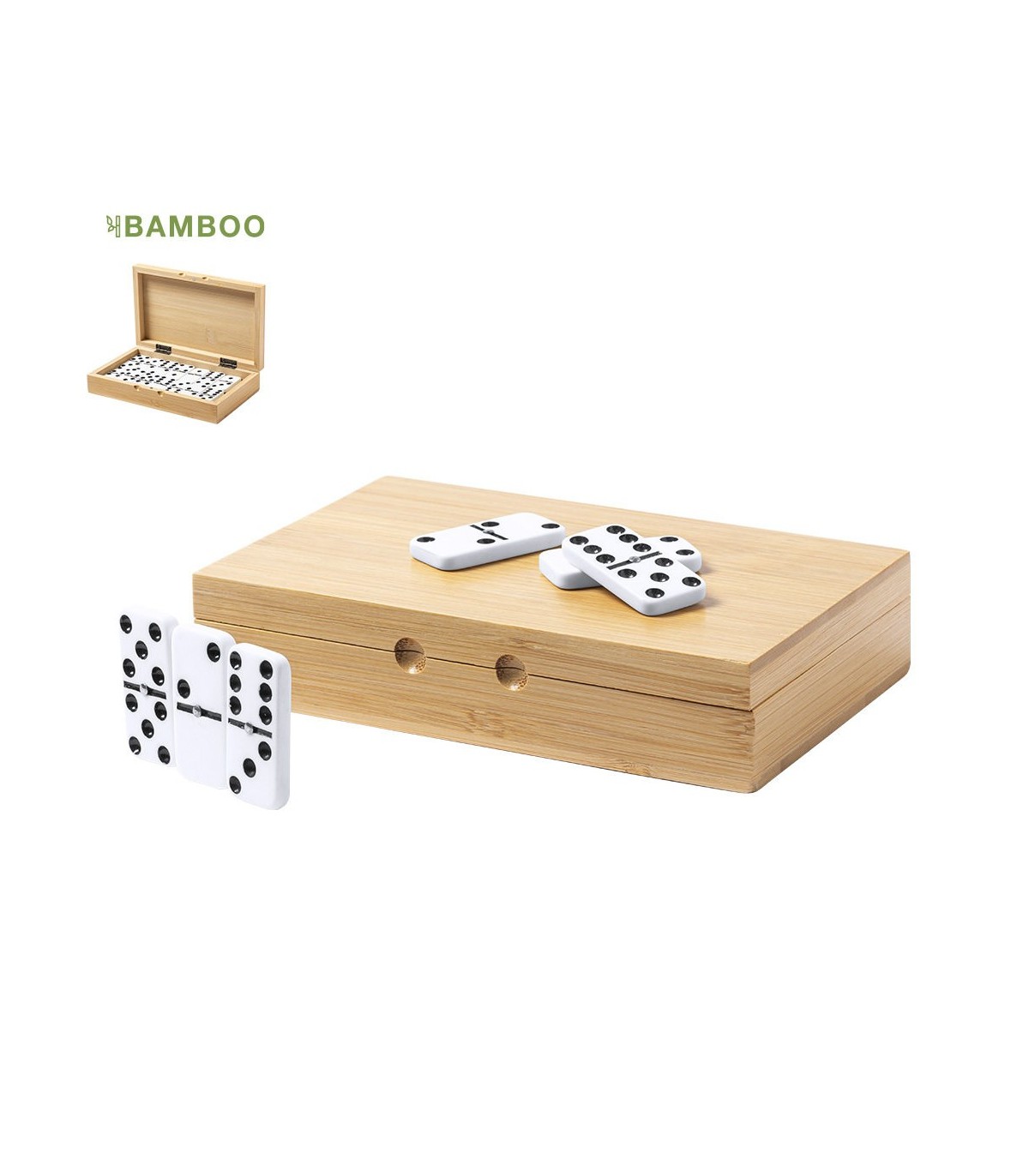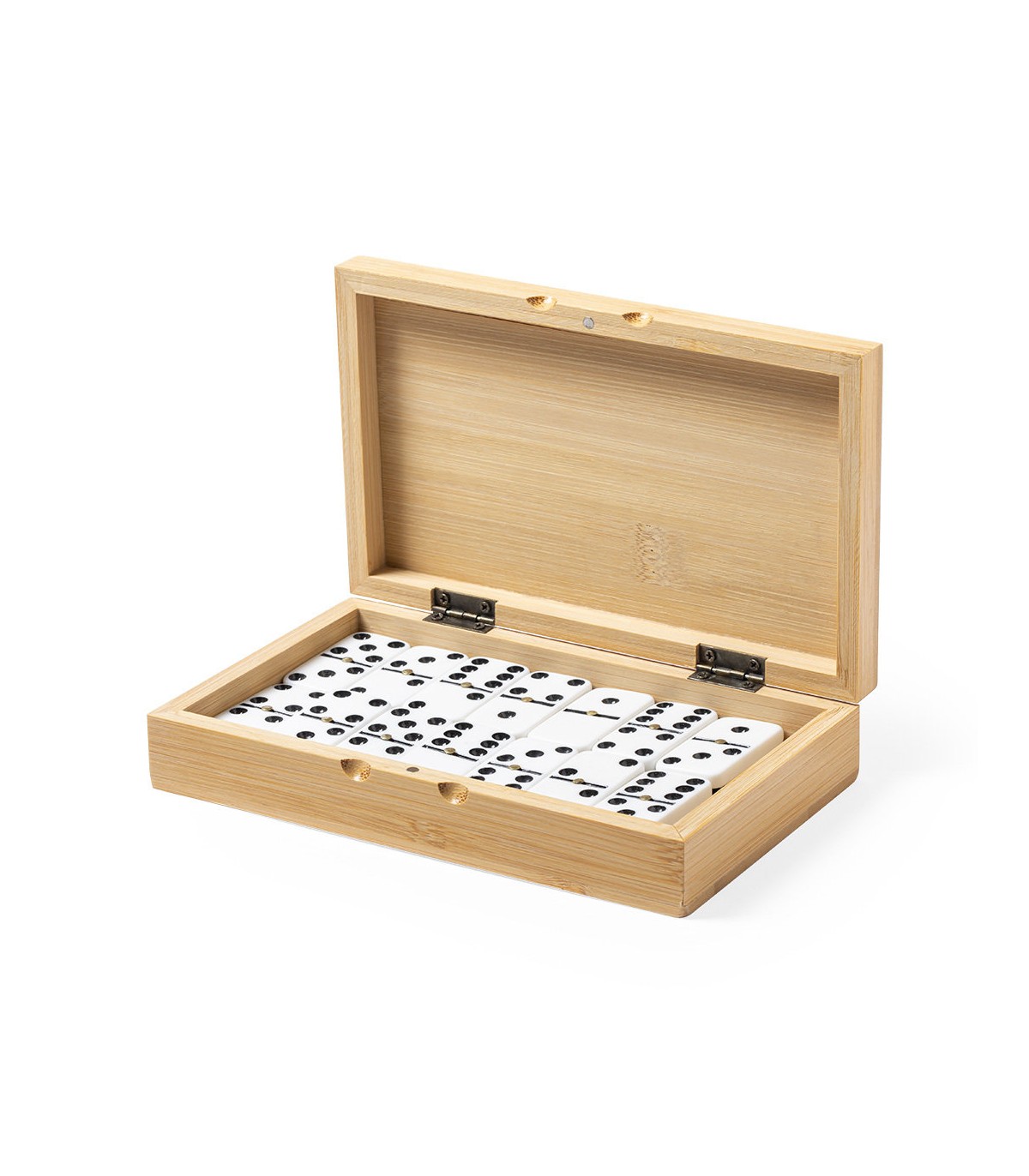 Dominó clásico de 28 piezas elaboradas en resistente melamina. Presentado en estuche individual de bambú lacado, con cierre imantado. Presentado en atractiva caja individual de diseño.