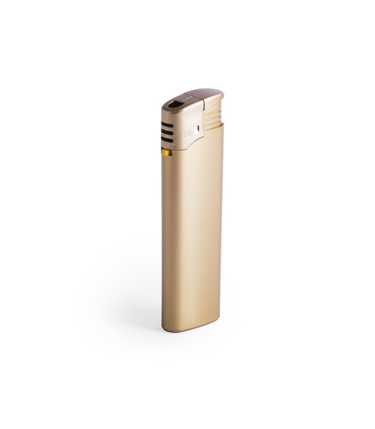 Mecheros metalizado en colores oro y plata personalizados para regalos promocionales de empresa, recargables, regulación de llama y protección infantil.