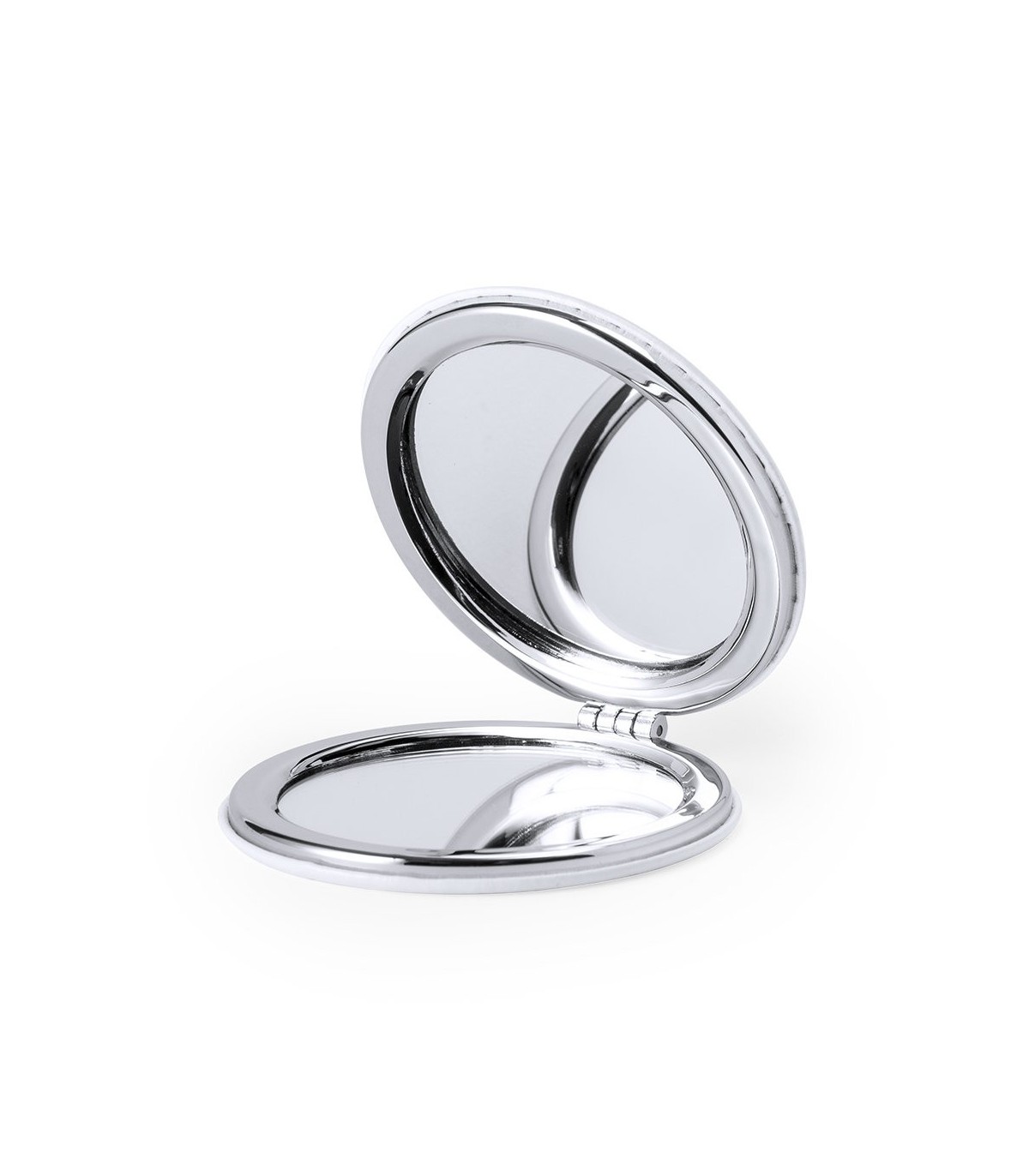 Espejos plegable para cartera, en formato redondos con acabado exterior en polipiel y 2 espejos de aumento, grabados con tu logo de empresa para regalos promocionales.