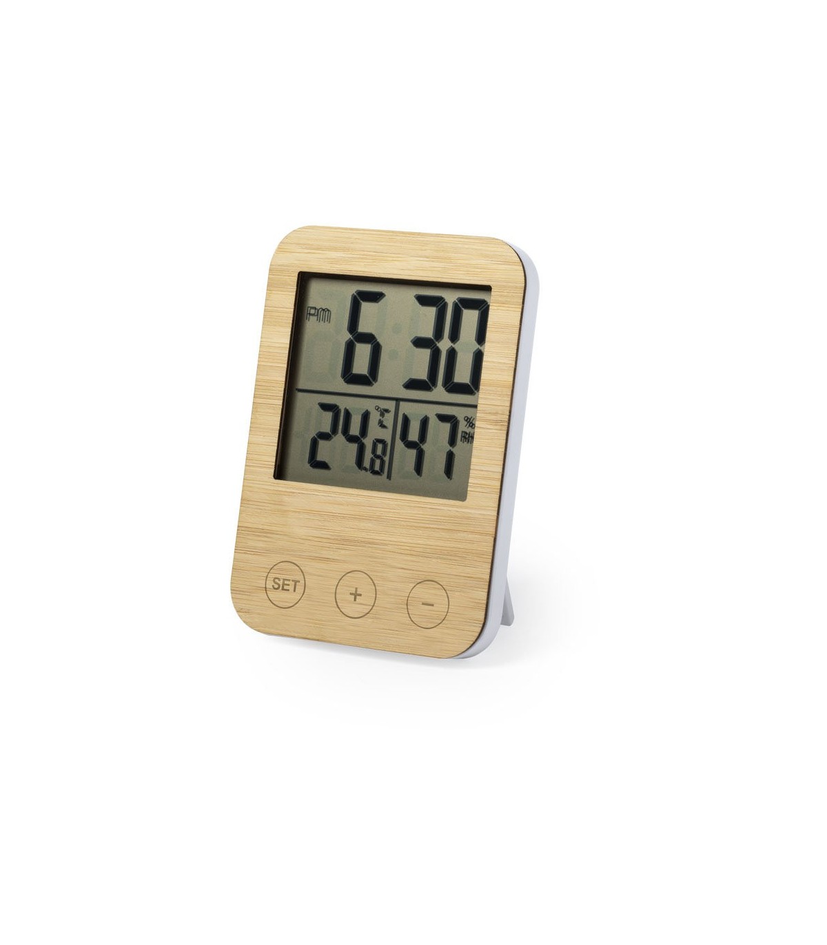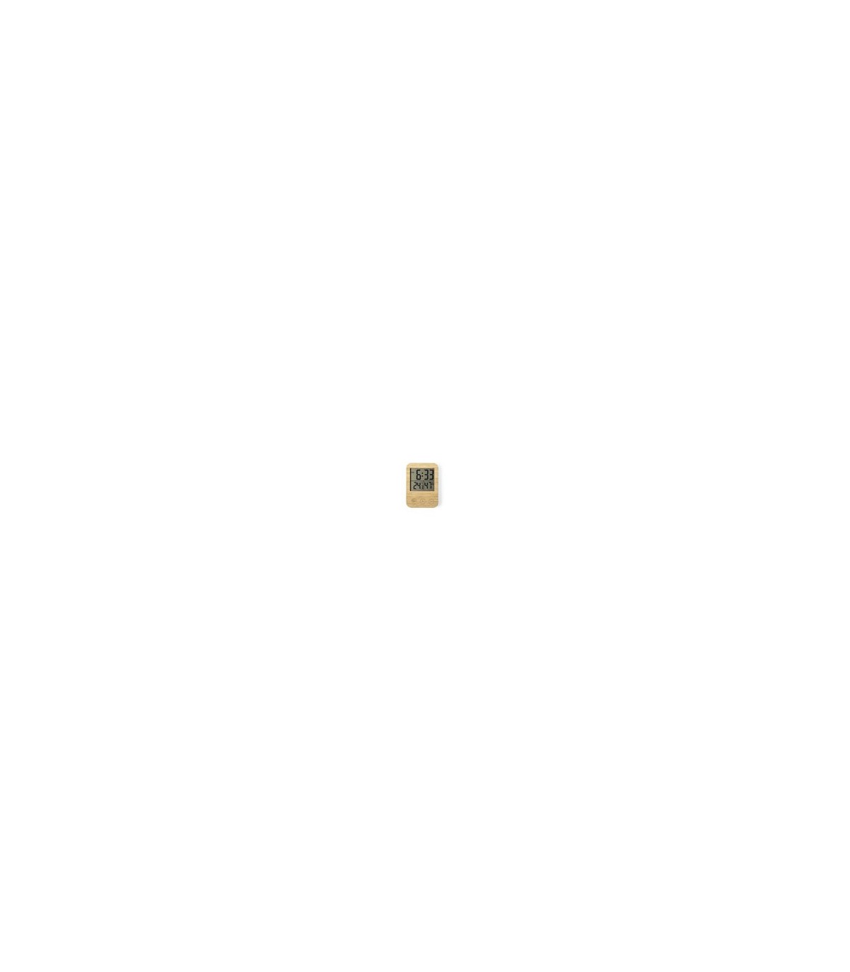 Estación meteorológica, frontal en bambú. Funciones higrómetro y termómetro. Alimentación a pilas (2xAAA no incluidas) y presentado en atractiva caja de diseño eco.