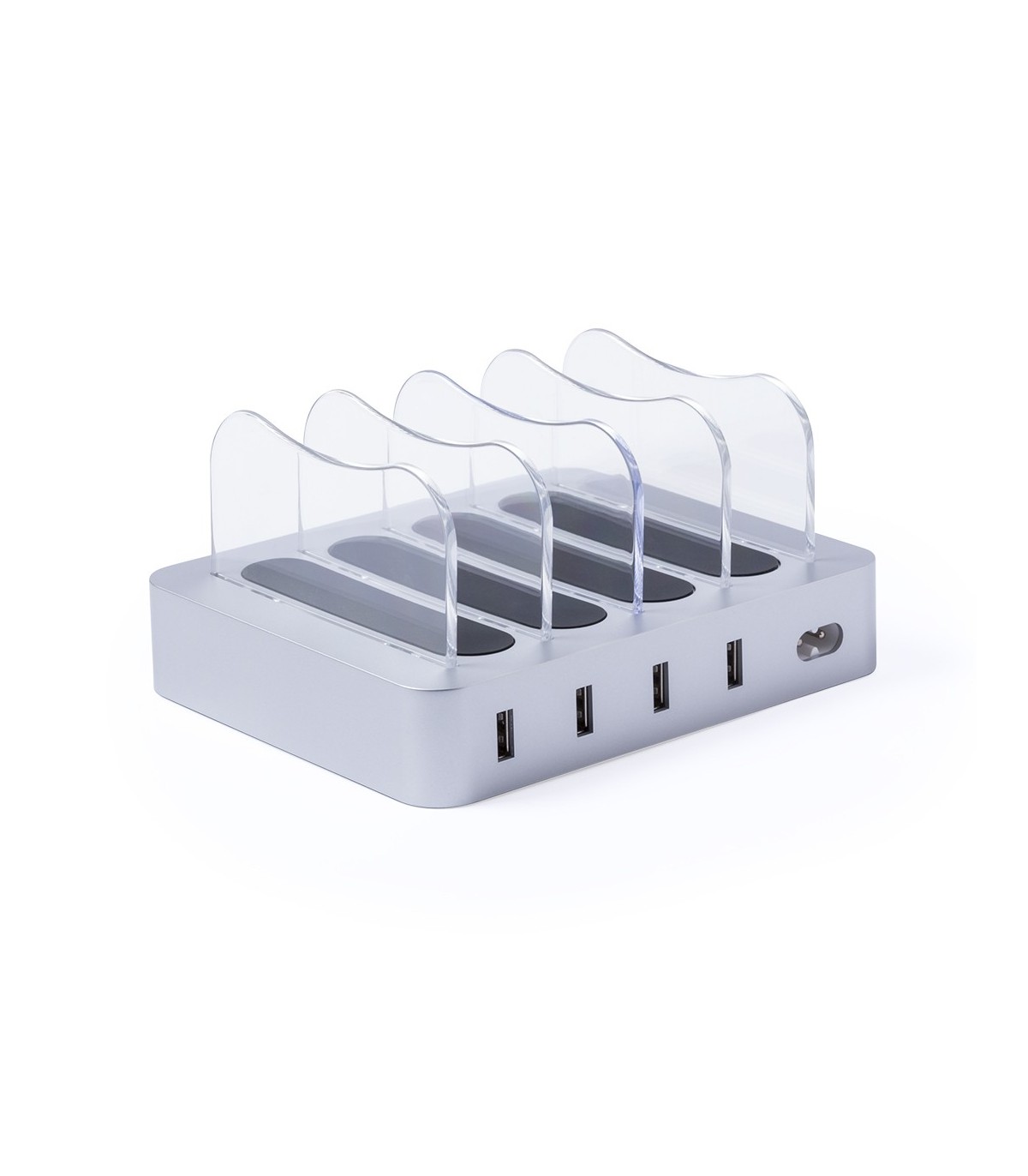 Estación de carga USB con e 6.800 mAh de capacidad de carga para alimentar simultáneamente 4 dispositivos móviles. Con base anti deslizante Incluye cable.
