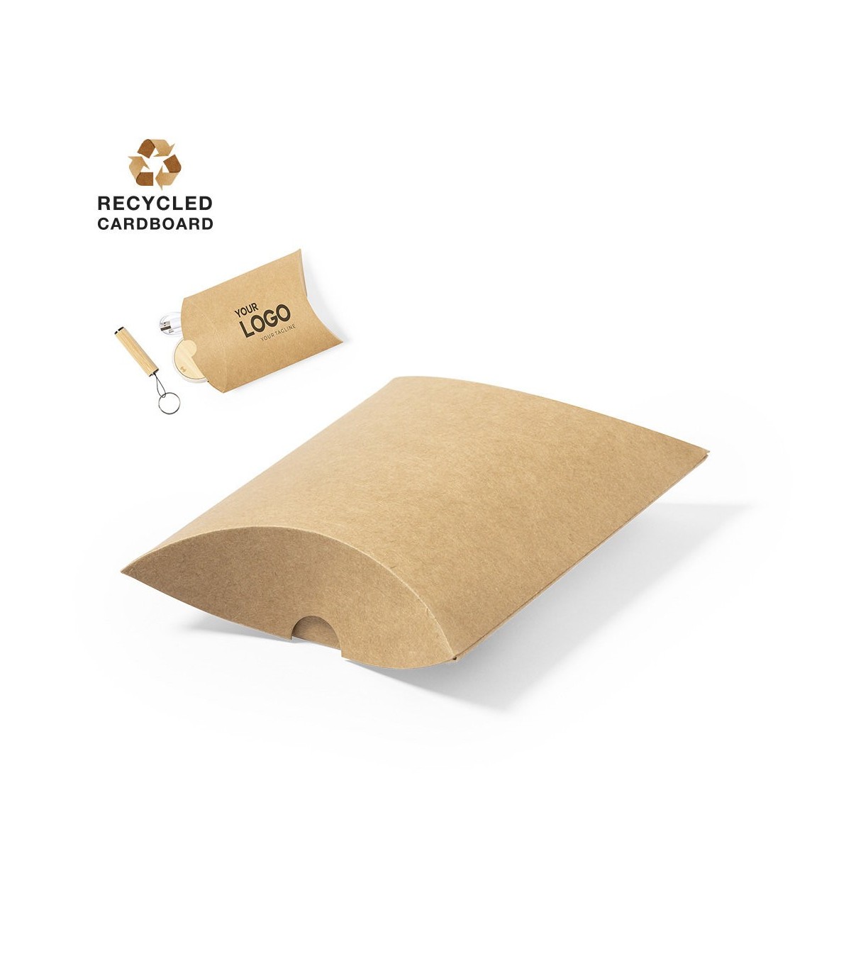 Estuche de presentación tamaño mediano, elaborado en cartón reciclado de acabado kraft. En línea con la tendencia del mercado hacia la sostenibilidad integral del regalo, ofreciendo soluciones de origen reciclado con el fin de ayudar a la mejora y conservación de nuestro planeta.