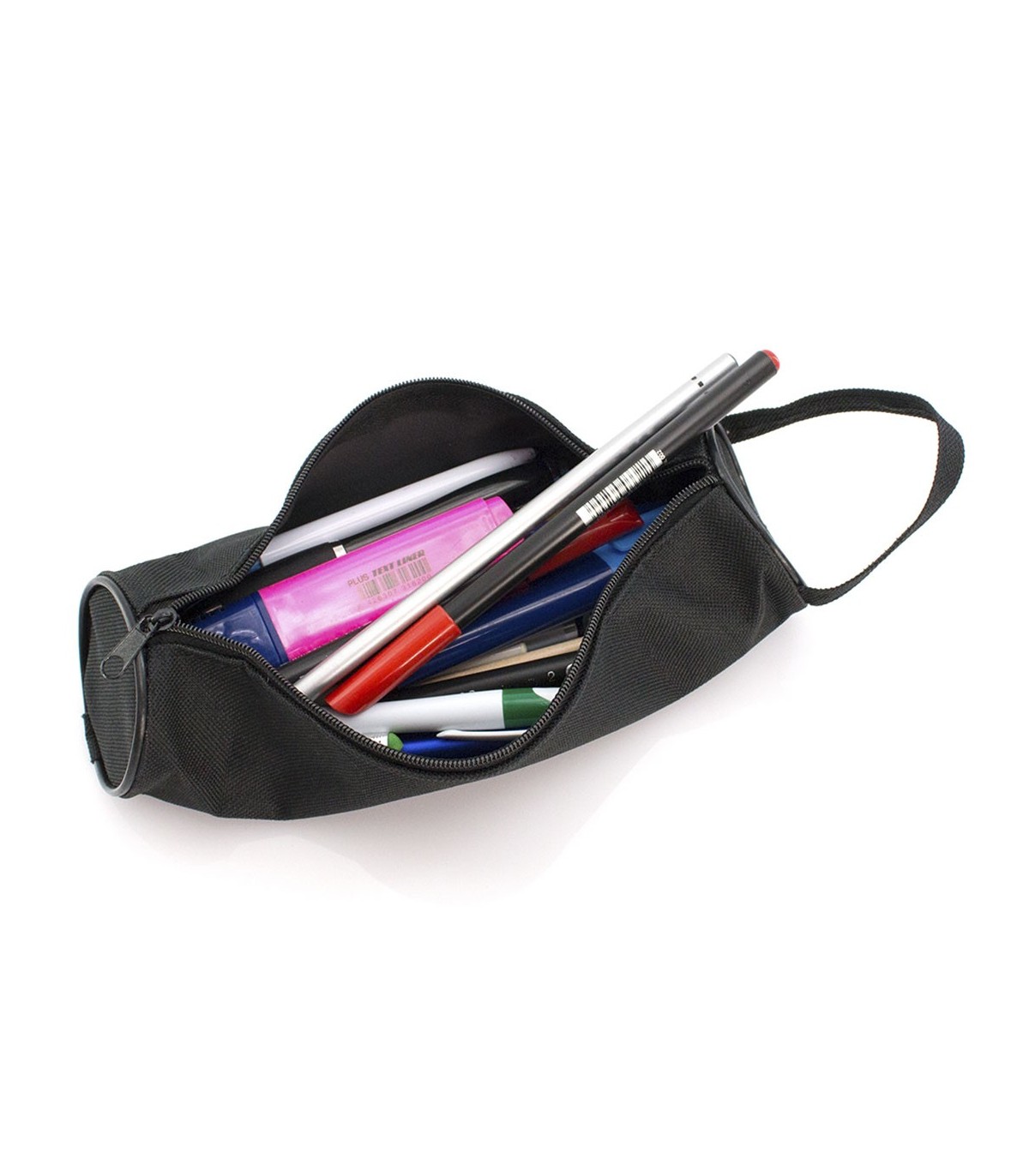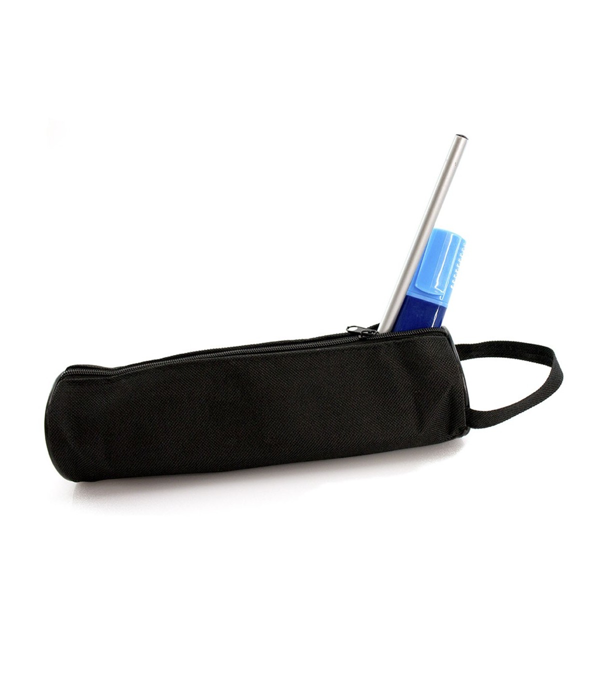 Clásico estuche de cremallera y diseño cilíndrico en resistente poliéster 600D. Con práctica asa de transporte y cremallera a juego.