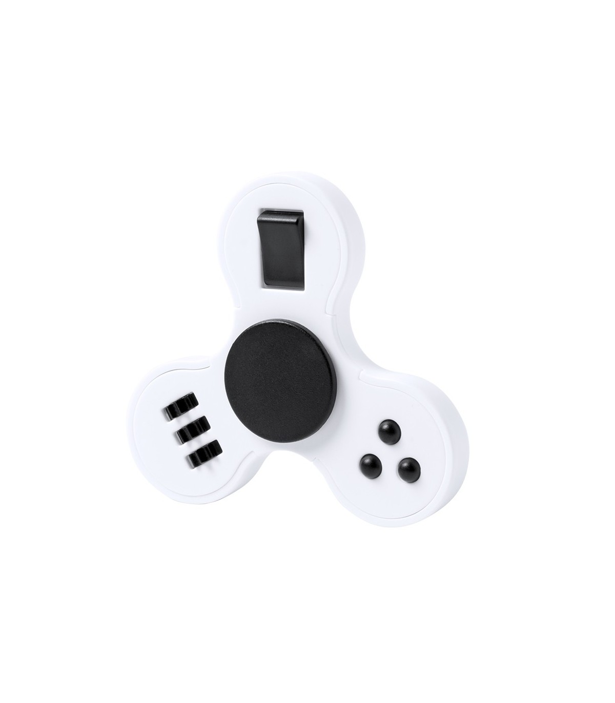 Fidget spinner antiestrés sencillo con multitud de botoncitos relajantes con cuerpo en color blanco y accesorios en varios colores para personalizar.