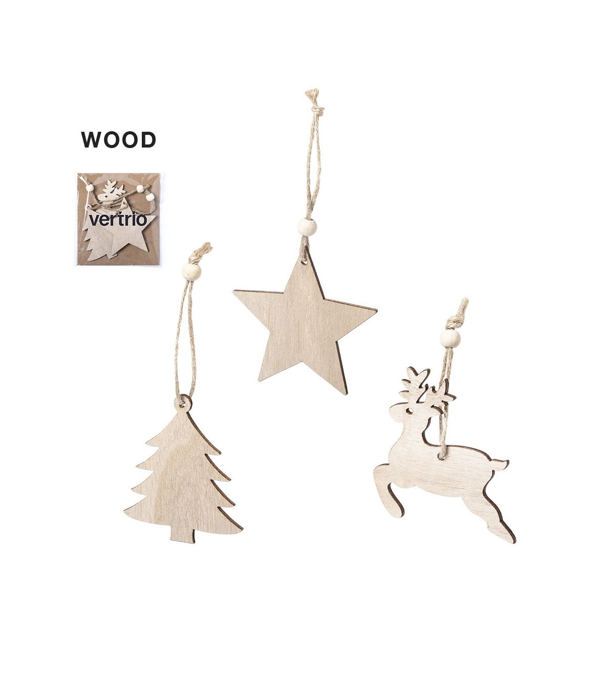 Original set de figuritas navideñas ecológicos para personalizar y regalar tus clientes con tu logo de empresa, Incluye reno, estrella y árbol de navidad.