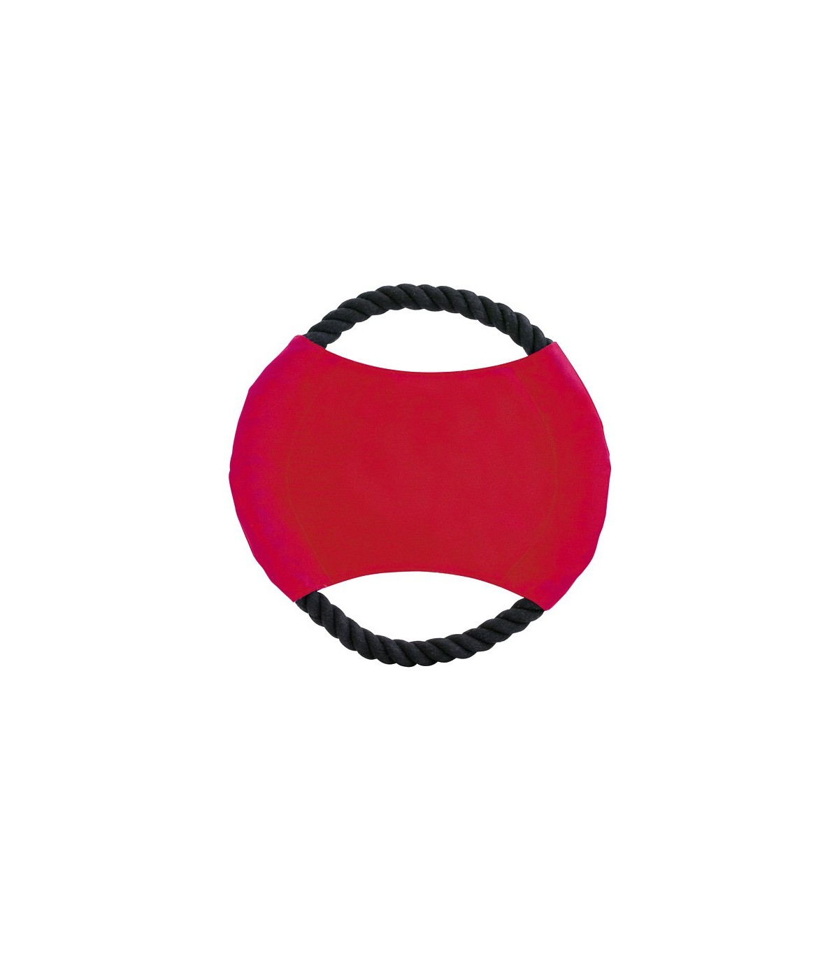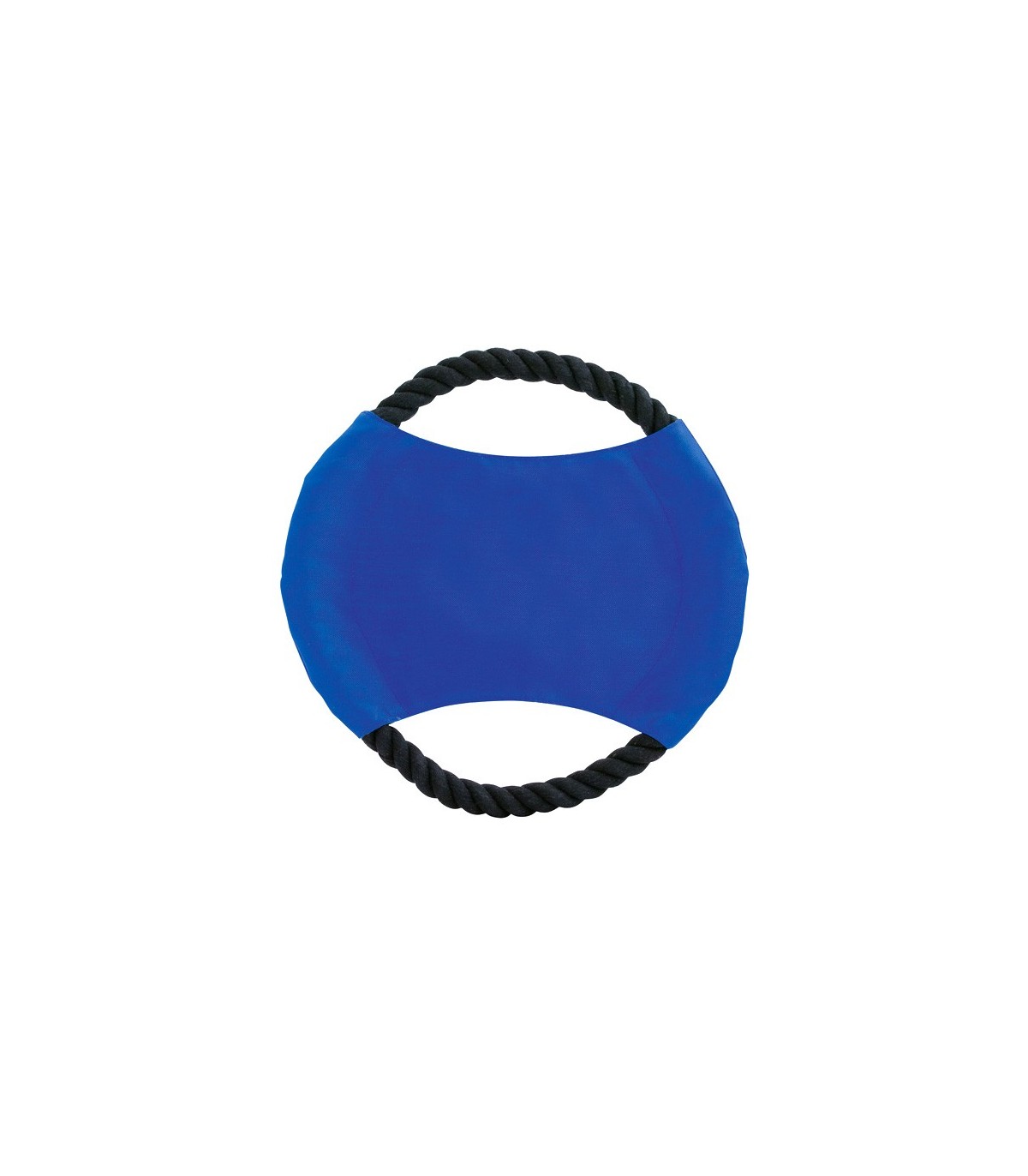 Frisbie para mascotas con resistente cuerda de algodón y parte central en algodón de vivos colores para regalos publicitarios de empresas y veterinarios.