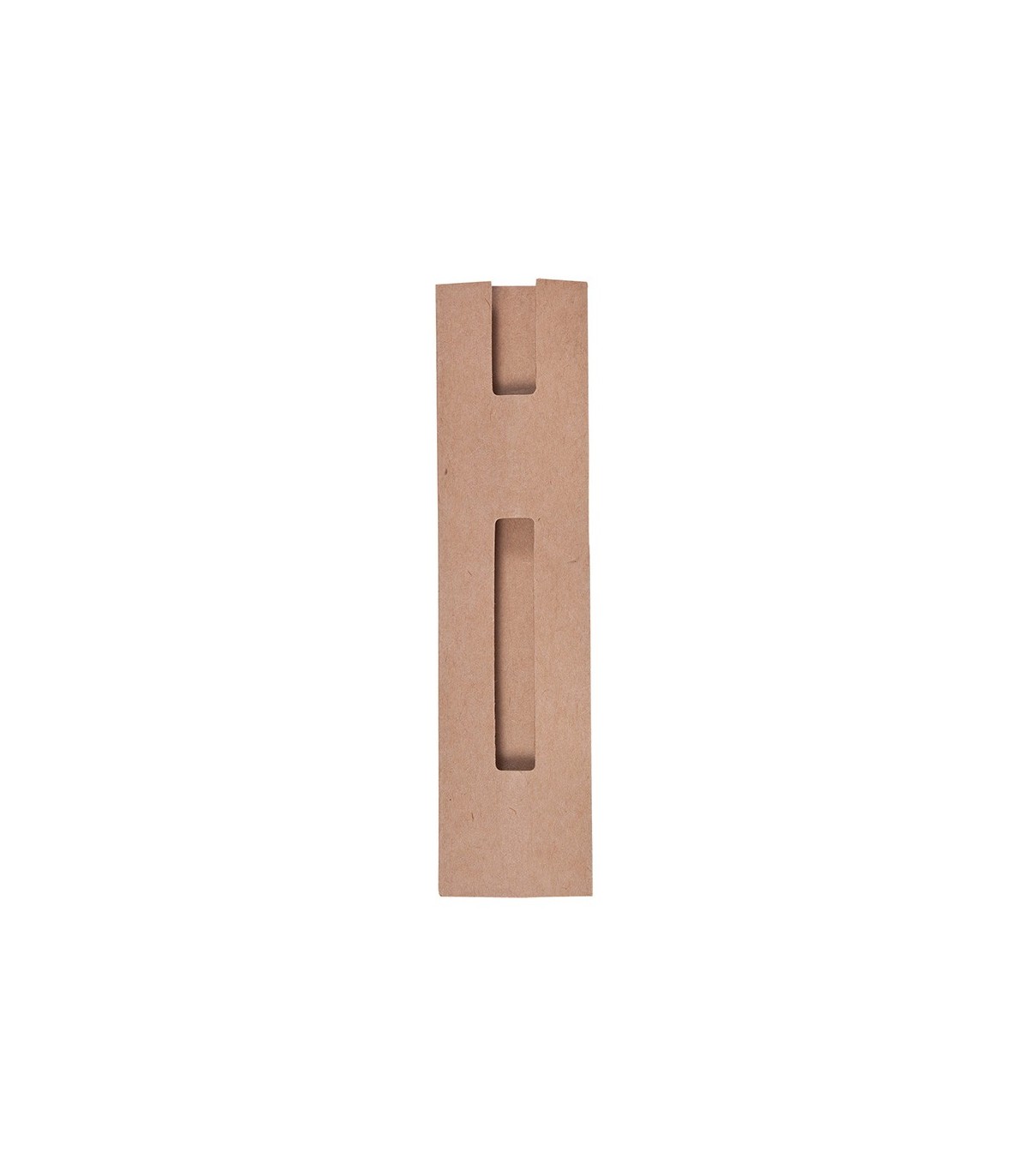 Funda para bolígrafo en resistente cartón reciclado de color natural y con diseño de ventana.