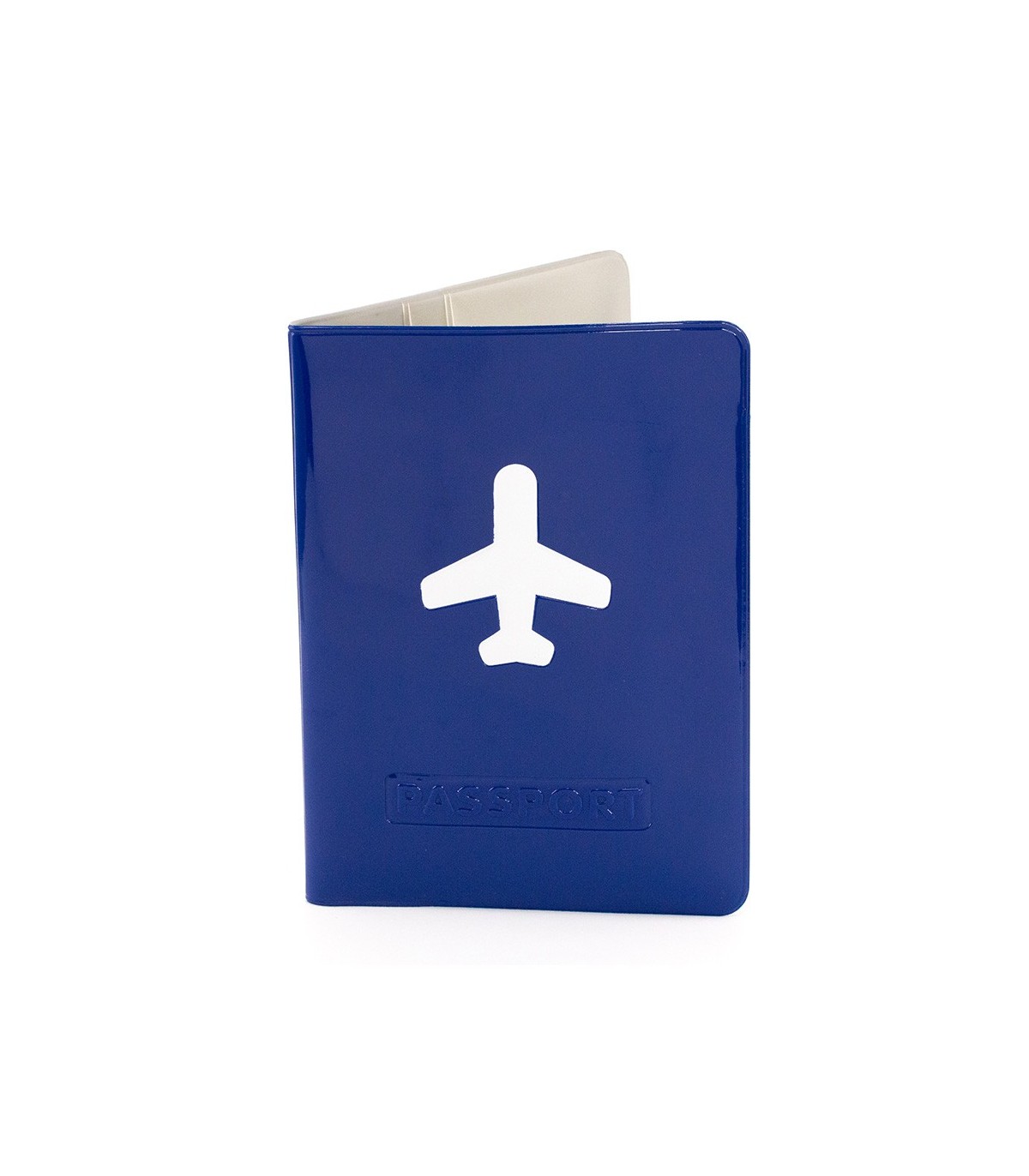 Funda para pasaportede diseño de avión en resistente PVC y diferentes colores para imprimir con tu logo. Con interior multibolsillo.