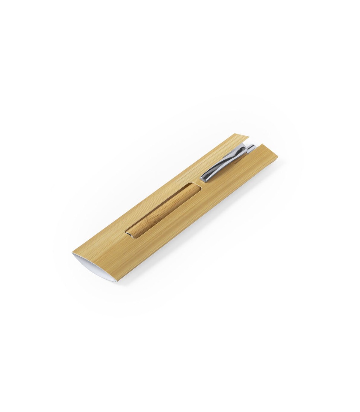 Funda de bolígrafo fabricada en cartón, con patrón inspirado en las vetas de bambú. Especialmente diseñada para mostrar la publicidad del clip y/o del cuerpo del bolígrafo (bolígrafo no incluido).