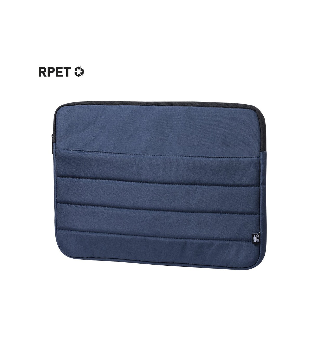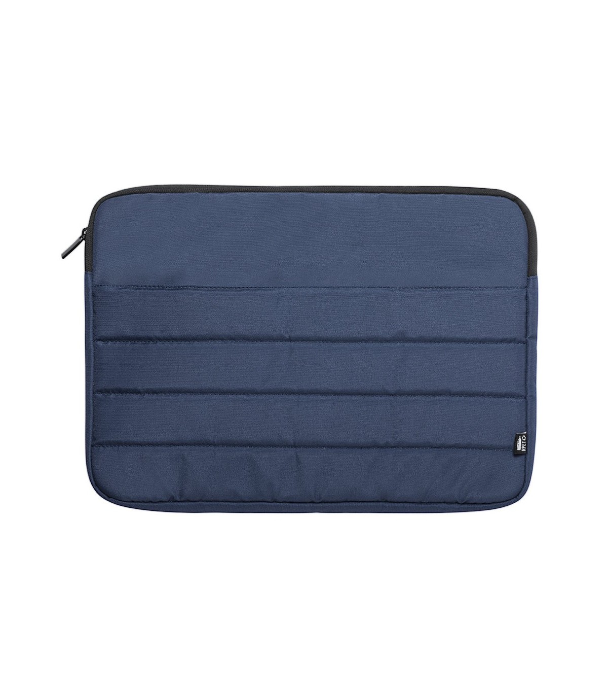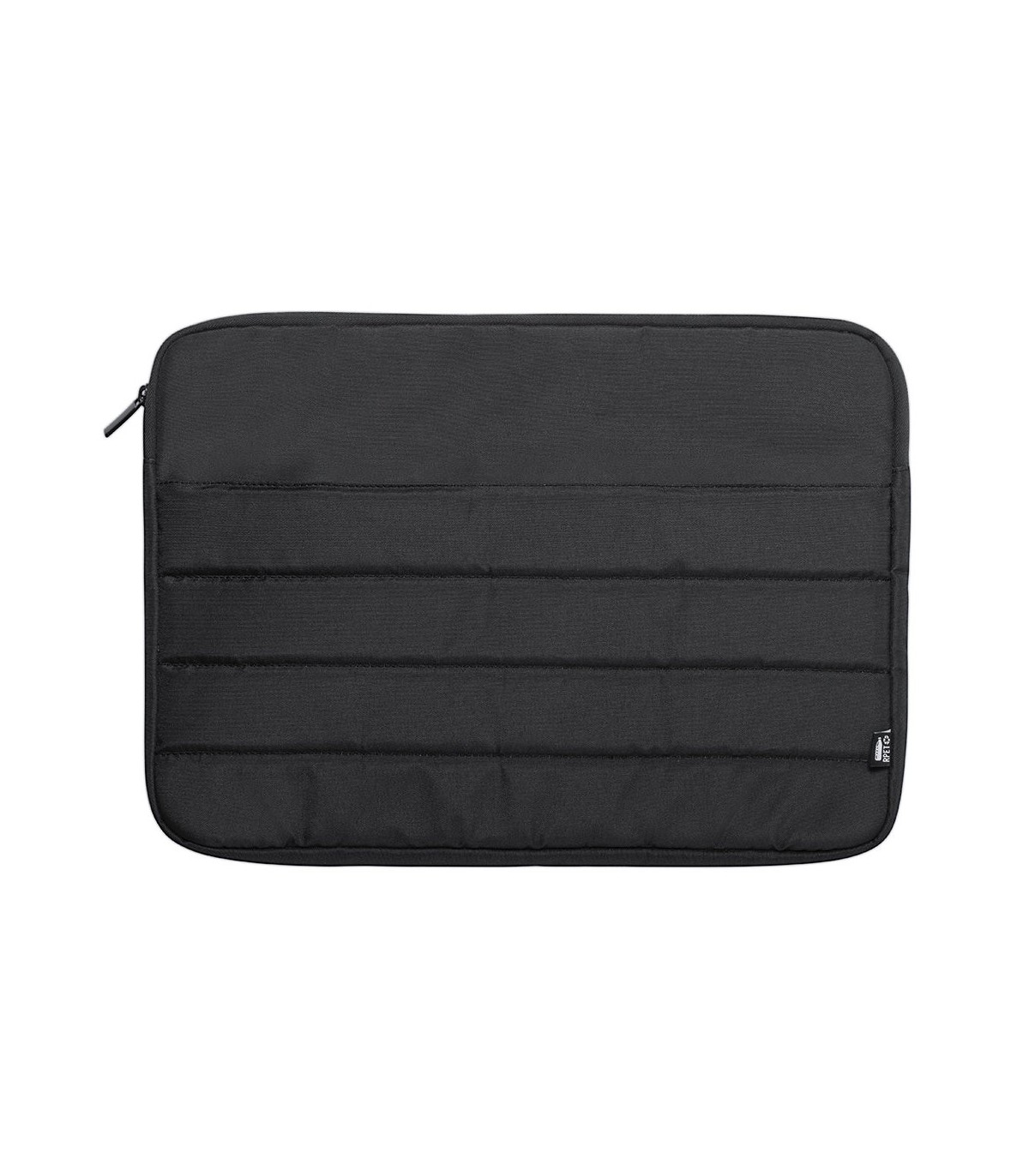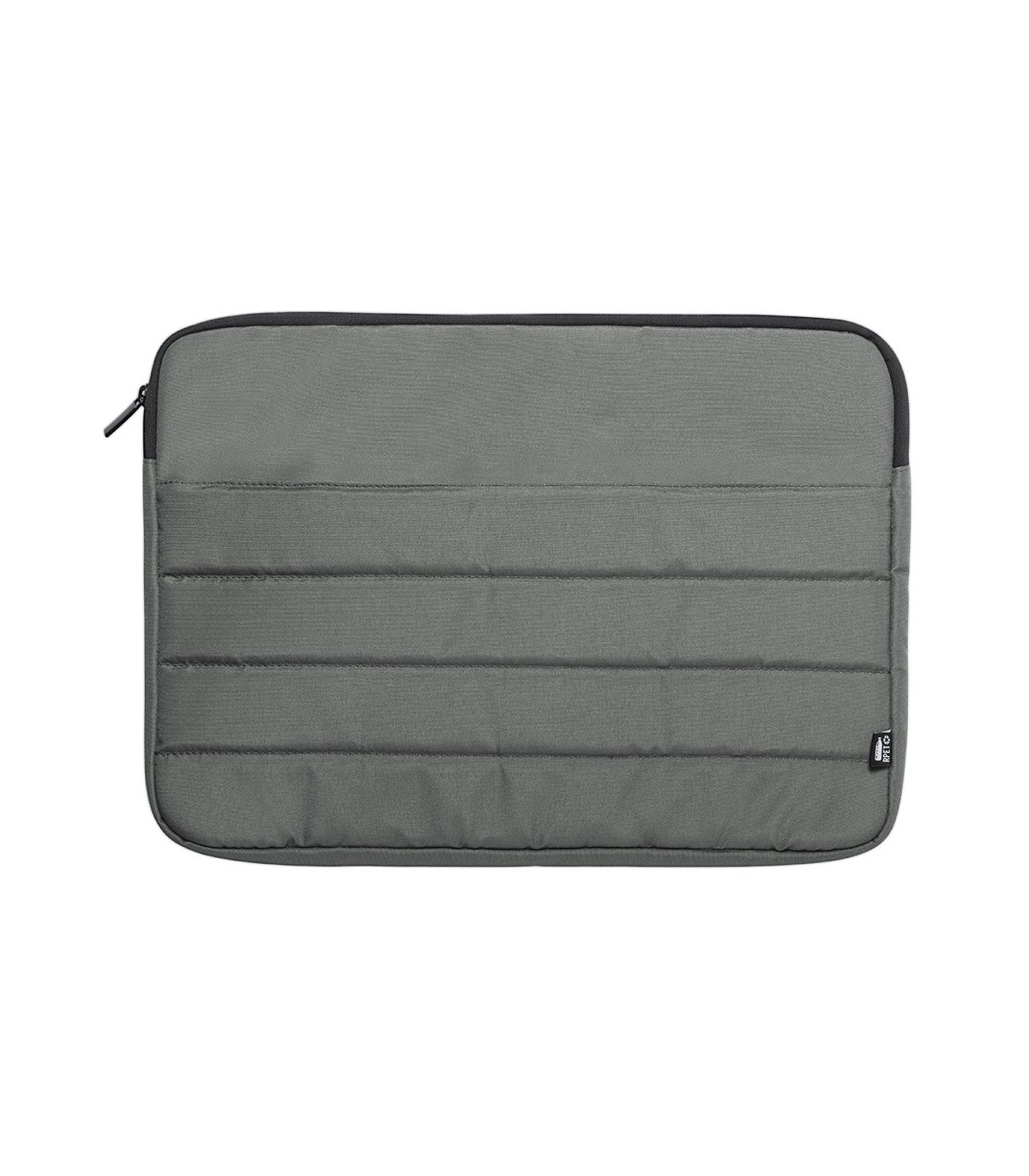 Funda para ordenador portátil de línea ecológica y acolchado total, para portátiles de hasta 15 pulgadas. Fabricada en resistente RPET 300D elaborado a partir de plástico reciclado, para así fomentar la reutilización de residuos plásticos y contribuir a la sostenibilidad del planeta. Bolsillo principal con cierre de cremallera y tirador metálico. Distintivo RPET en etiqueta.