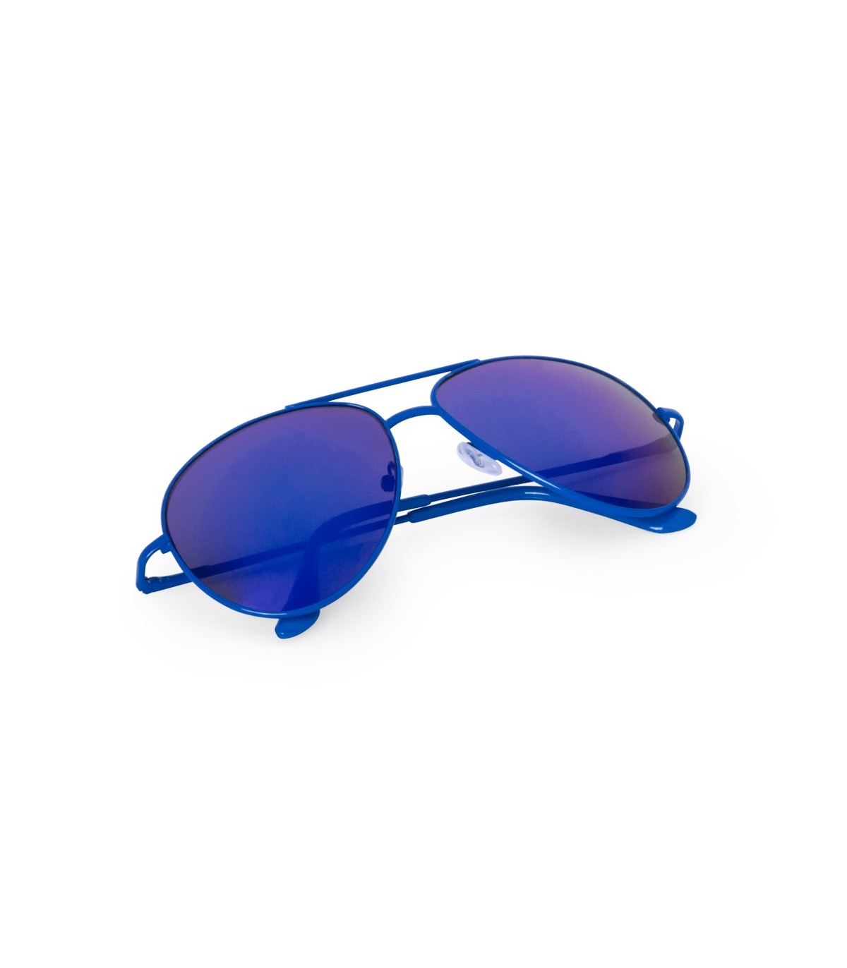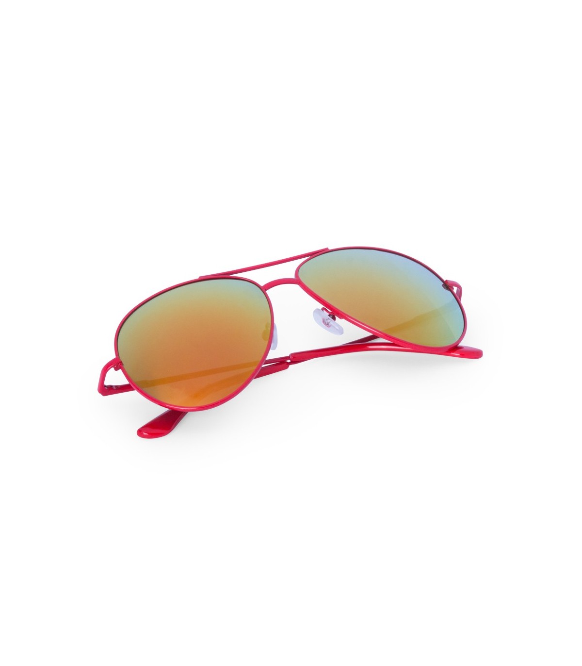 Gafas de sol estilo aviador para regalos de empresa! con protección UV400. Con montura metálica en brillantes colores y lentes espejadas a juego.