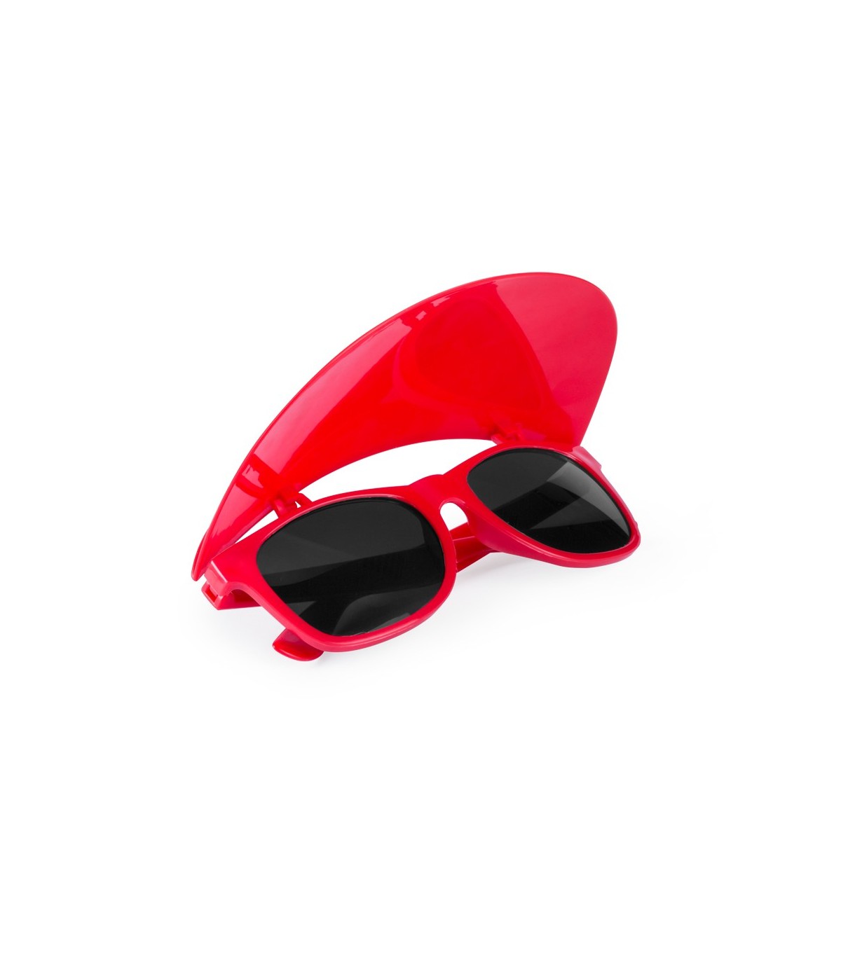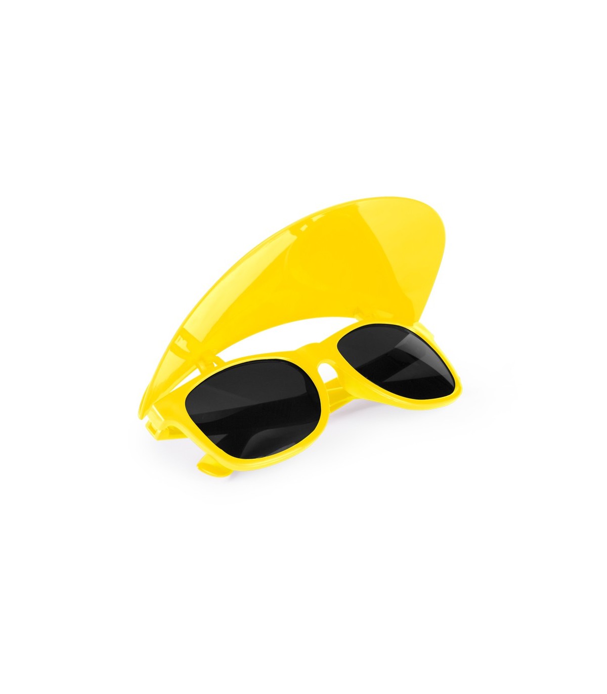 Gafas de sol playeras con protección UV400 de clásico diseño y con visera a juego. Con montura de acabado brillante en divertidos colores y lentes en color negro.