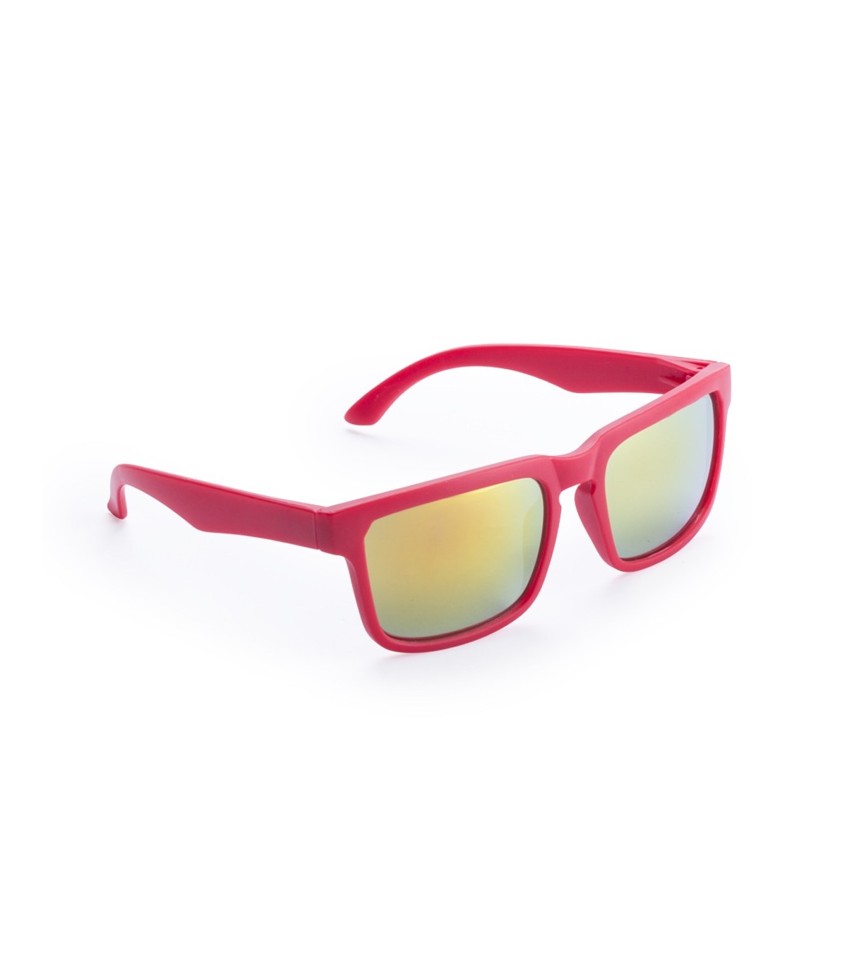 Gafas de sol con protección UV400 diseño veraniego. Con montura mate en divertidos colores y lentes espejadas a juego personalizadas para regalos de empresa.