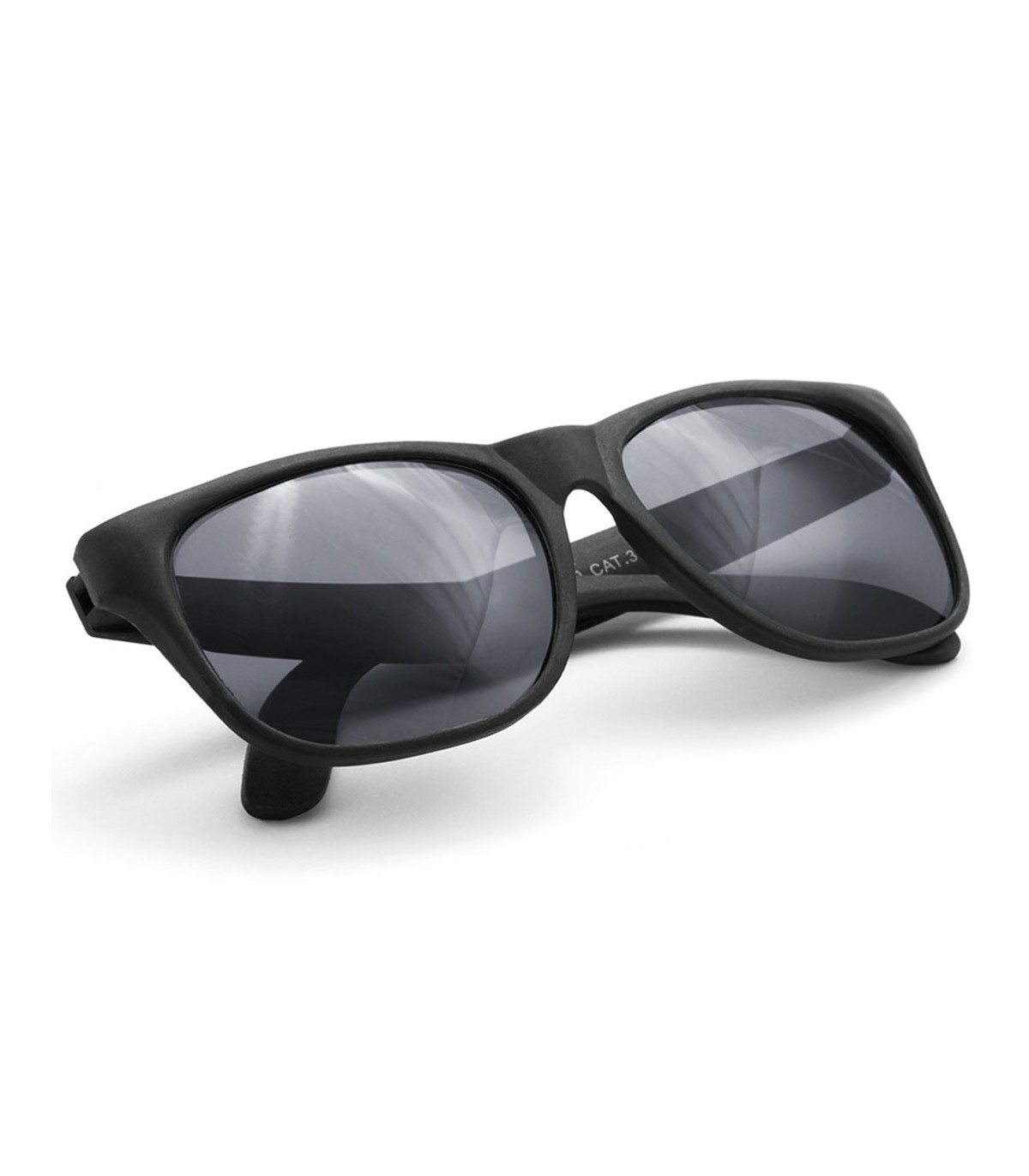 Gafas de sol con protección UV400 de clásicas con lentes de color negro y montura de acabado mate y varios colores para personalizar como articulo promocional.