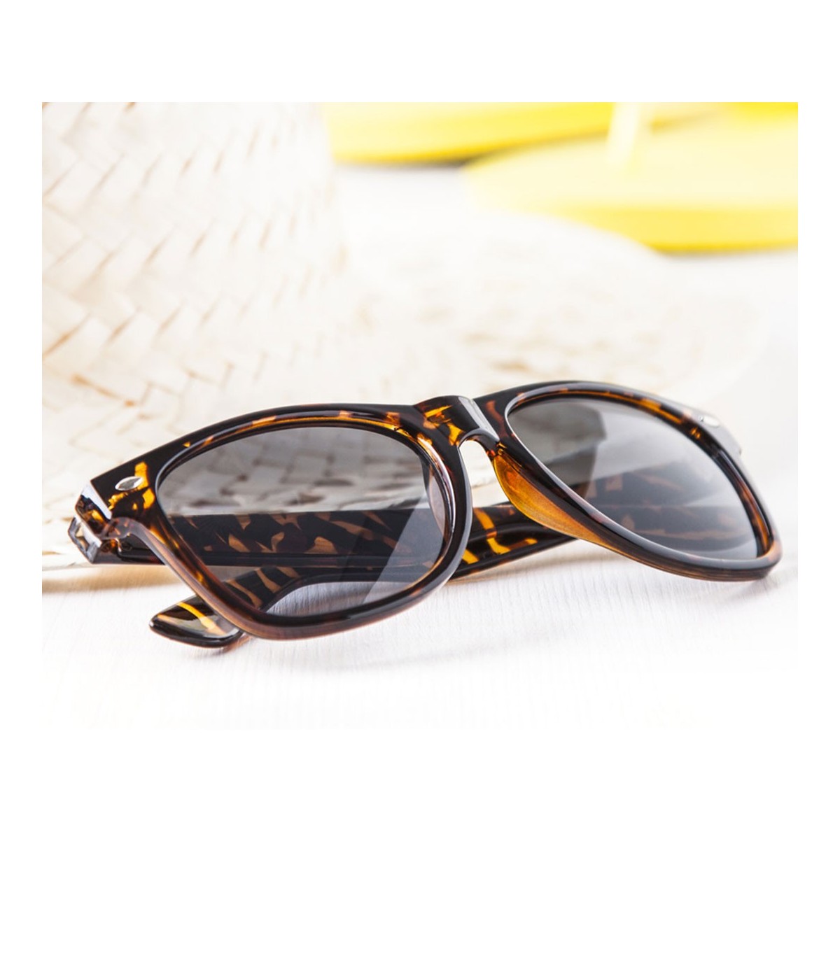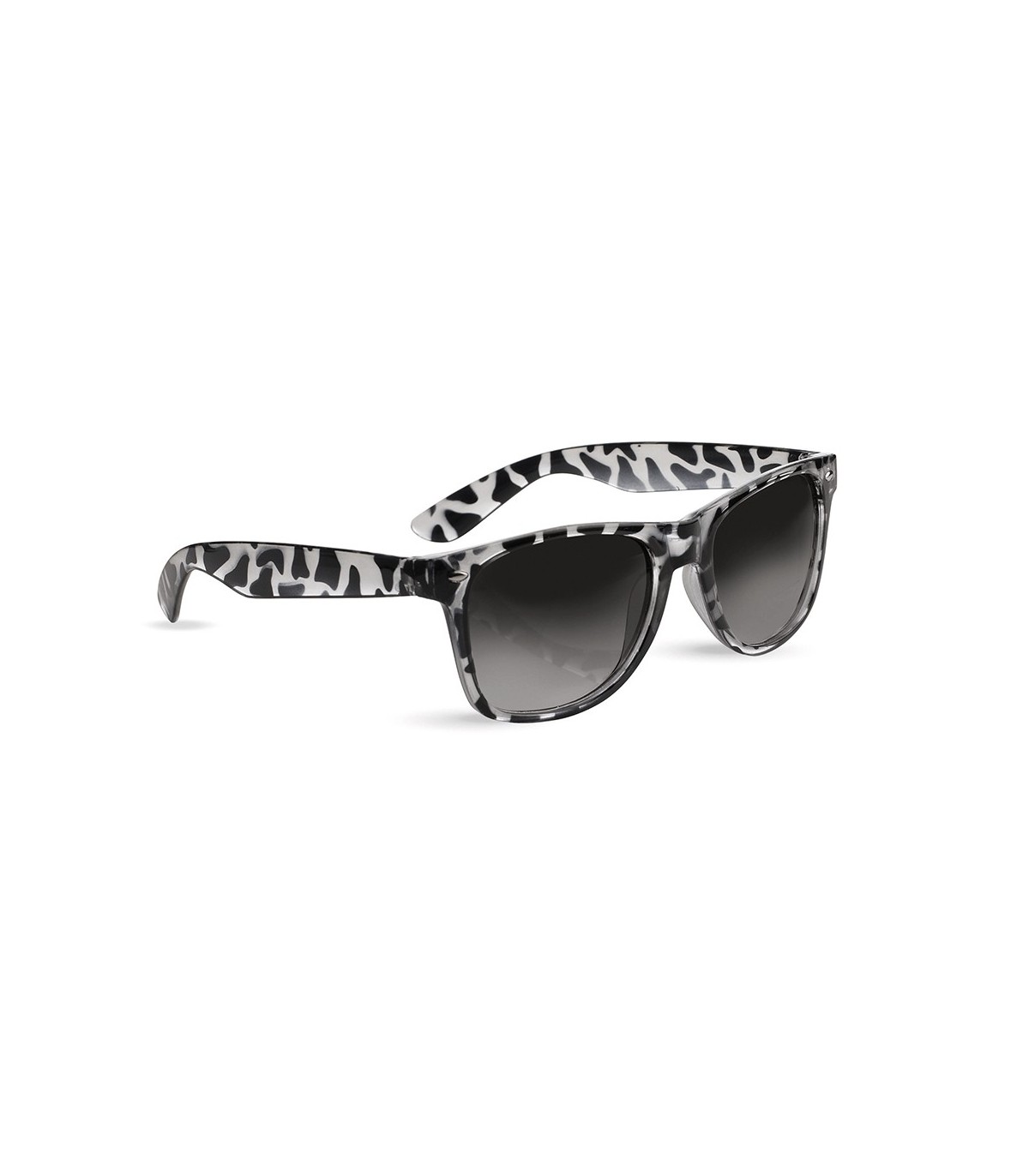 Gafas de sol, ideales para la primavera con original montura translucida y diseño en trama natural con vetas, personalizadas para regalos de empresa publicitarios.