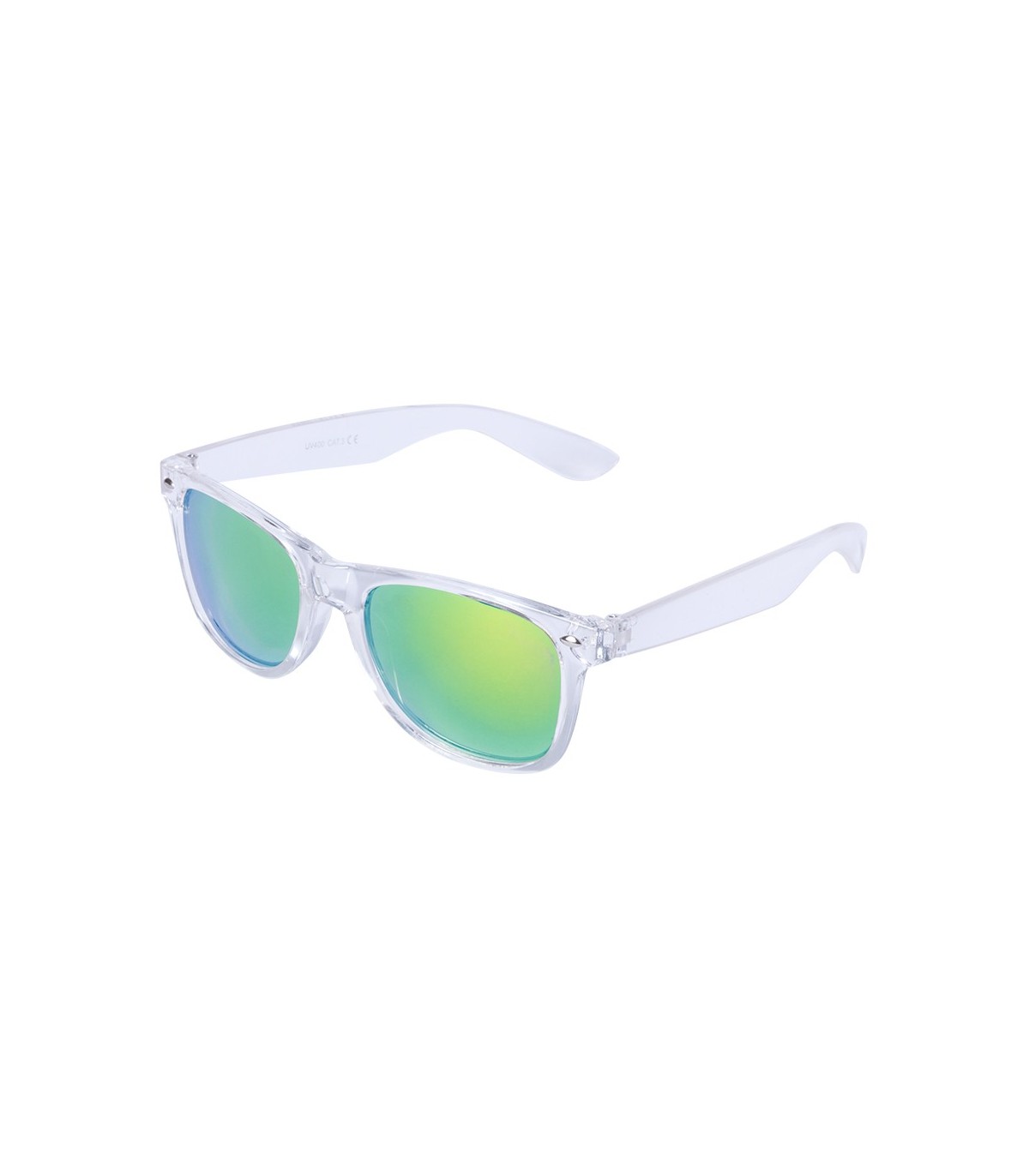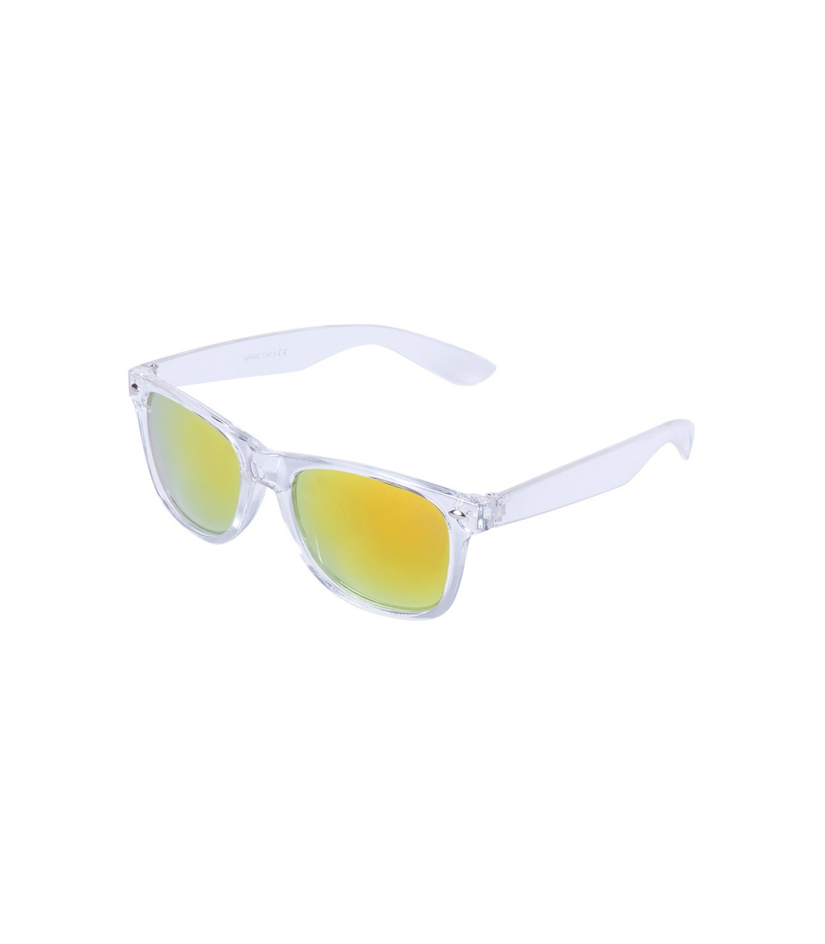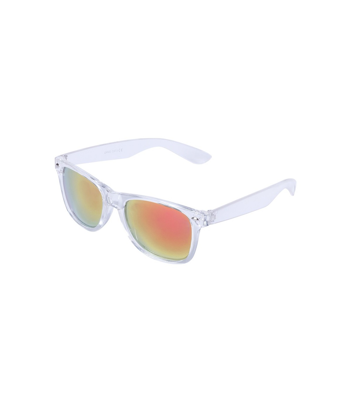 Gafas de sol con protección UV400 de clásico diseño. Con montura de transparente y lentes espejadas para regalos publicitarios.