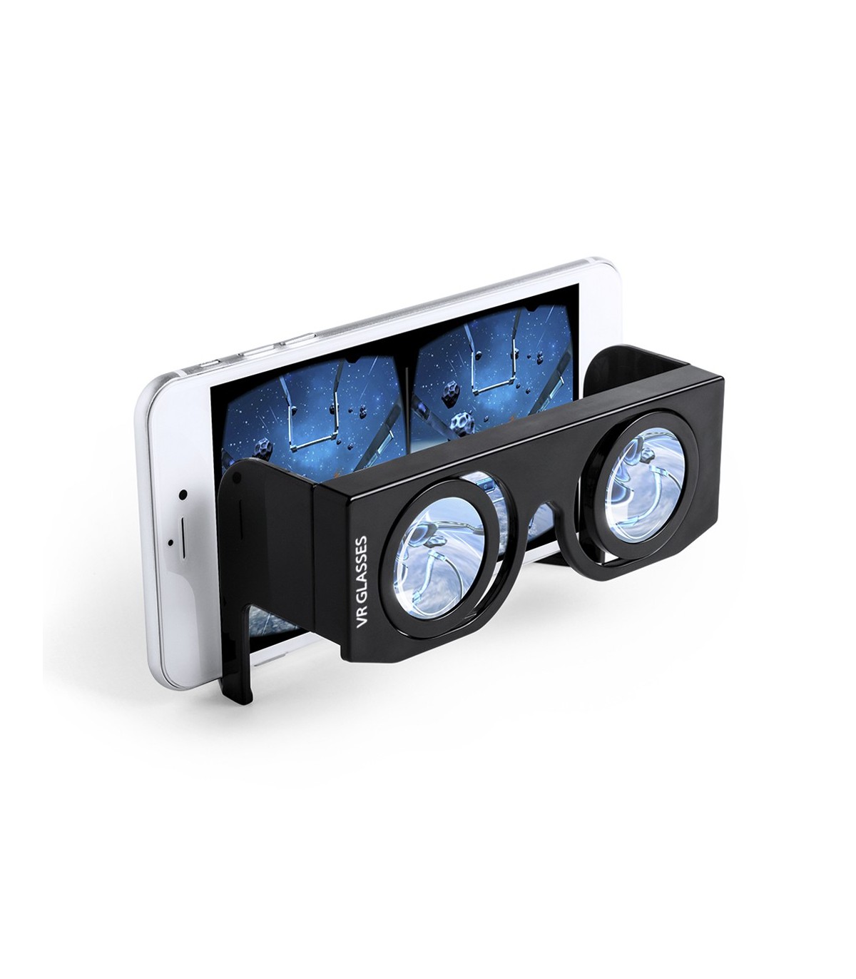 Gafas de realidad virtual plegables y compactas, con lentes ajustables y compatibles con todo tipo de smartphones. Indicadas para vídeos 3D y 360º y presentadas en estuche individual de plástico con amplia superficie de marcaje.